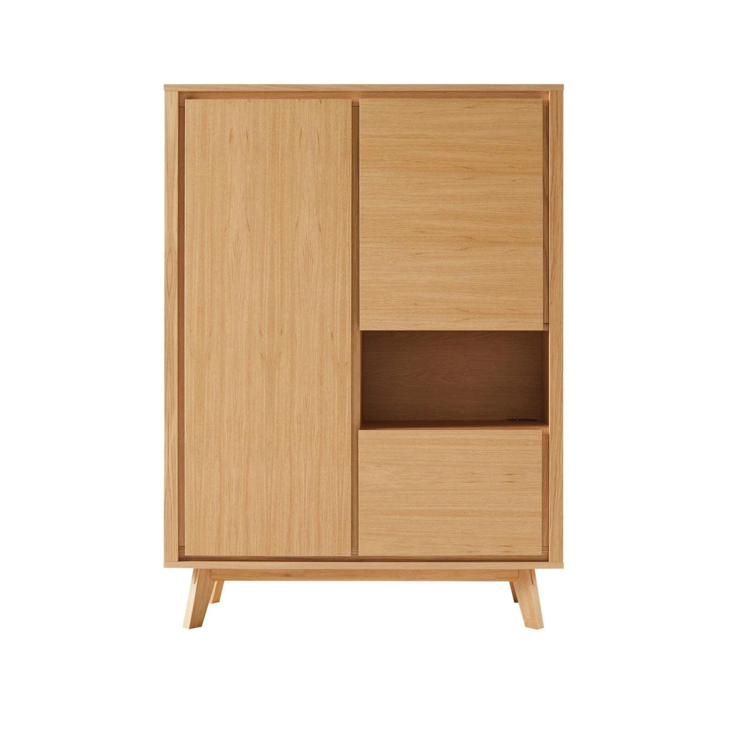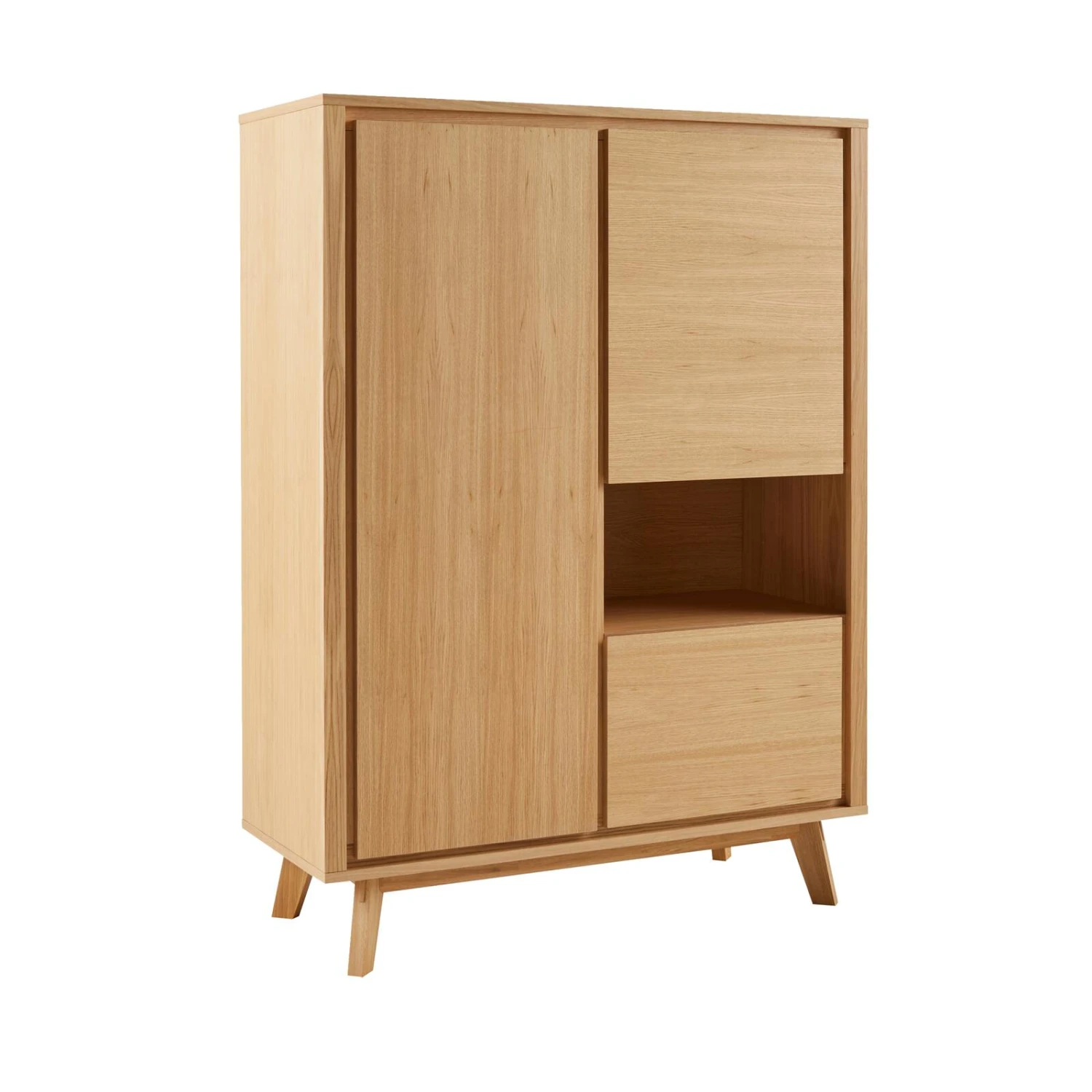 Composé de bois de chêne, ce buffet sobre et élégant dispose de pieds inclinés rappelant les meubles scandinaves, et possède un aspect rétro très tendance.