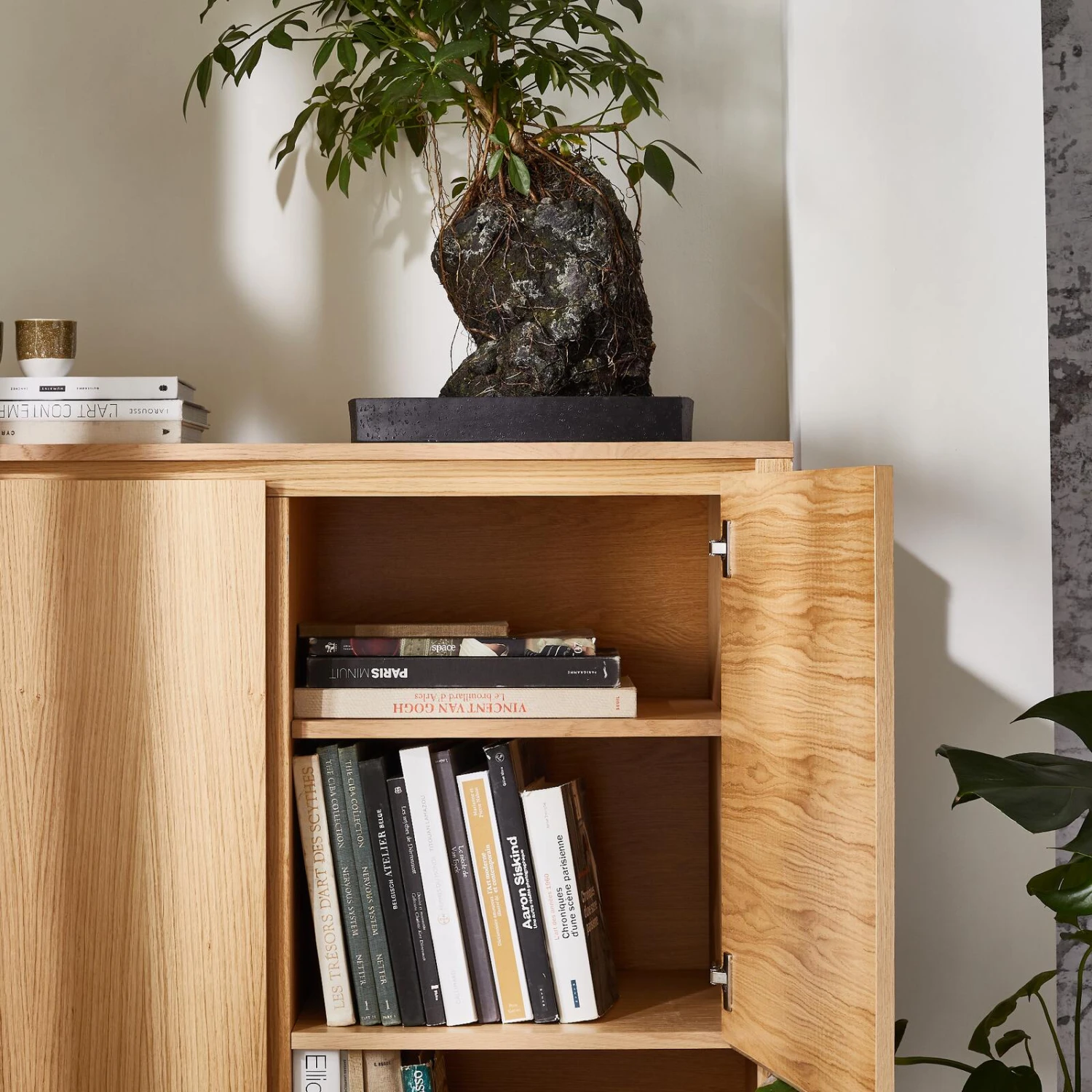 Cette création 4MURS comporte un tiroir ainsi que deux placards, un grand et un plus petit. Vous pourrez y ranger sans problèmes de nombreux éléments tels que de la vaisselle, du linge de maison ou encore des jeux de société. Un dernier espace non fermé vous permet d’y placer quelques livres et, bien sûr, vous pourrez disposer sur son sommet des objets de décoration tels que des photos encadrées ou encore des plantes.