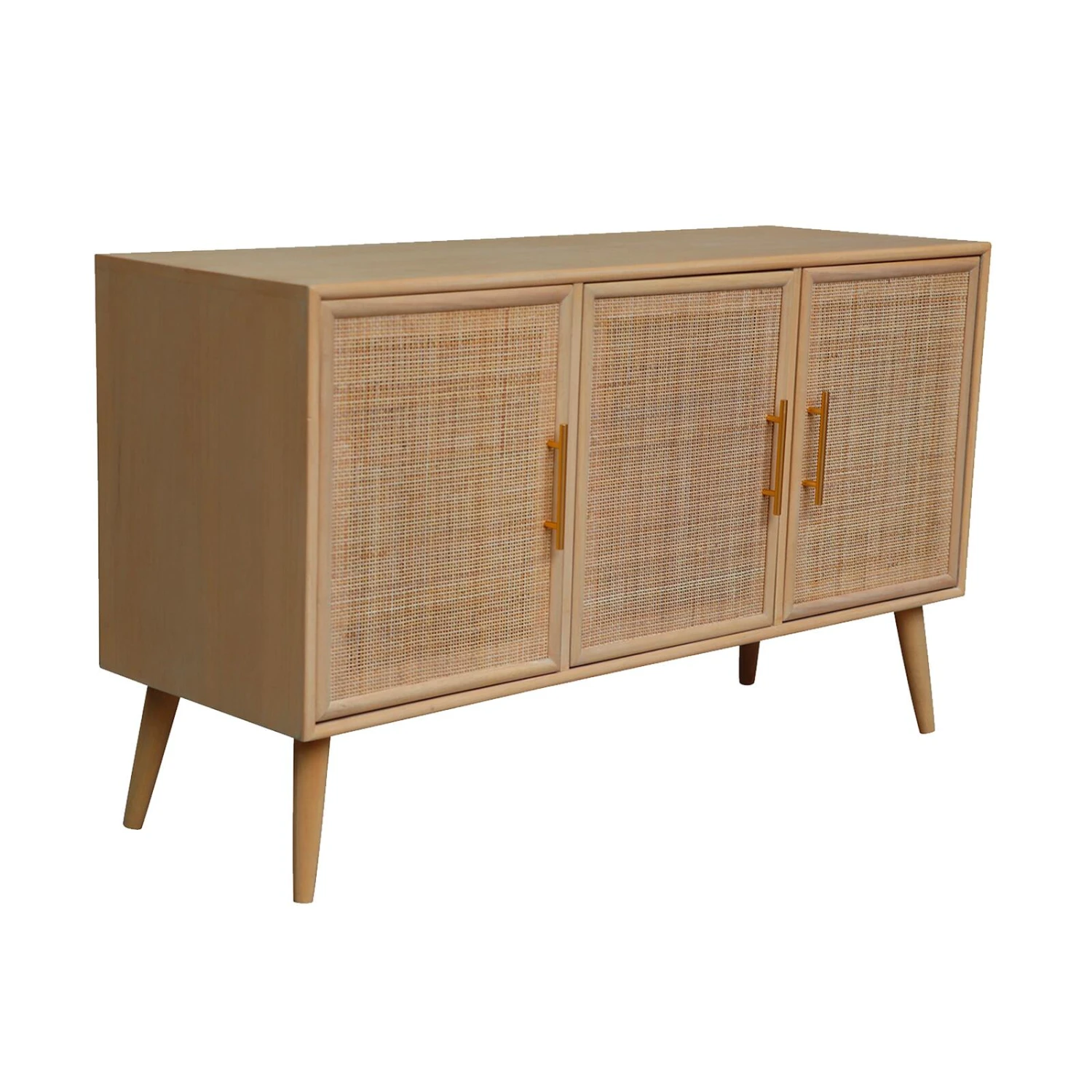 Ses trois portes en rotin vous permettent d’organiser vos affaires tout en exposant vos plus beaux objets déco, une jolie toile ou un grand miroir design.