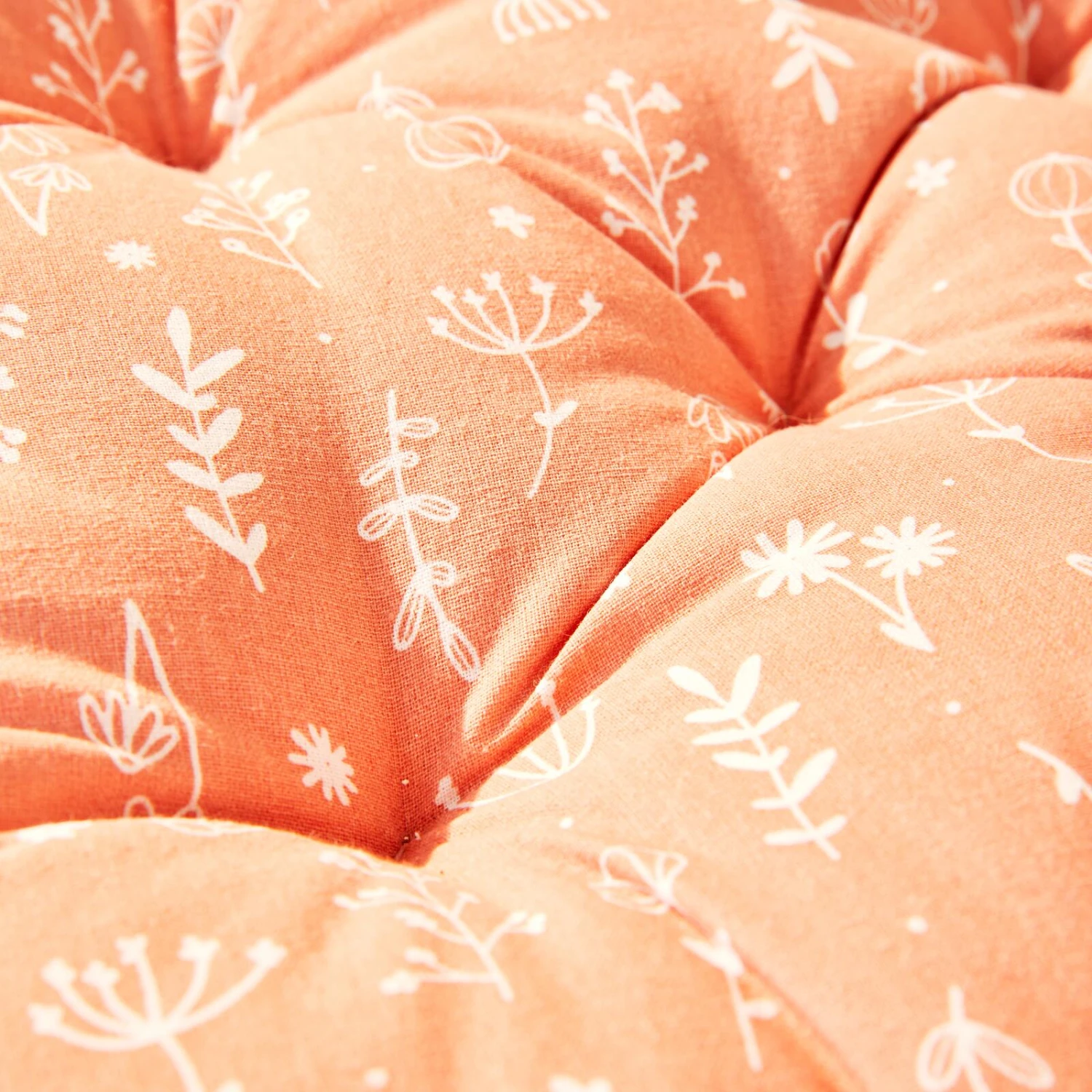À utiliser seul ou à superposer à d’autres coussins, sa couleur rose et ses motifs de fins feuillages collent à merveille aux ambiances délicates, champêtres et colorées des petites princesses.