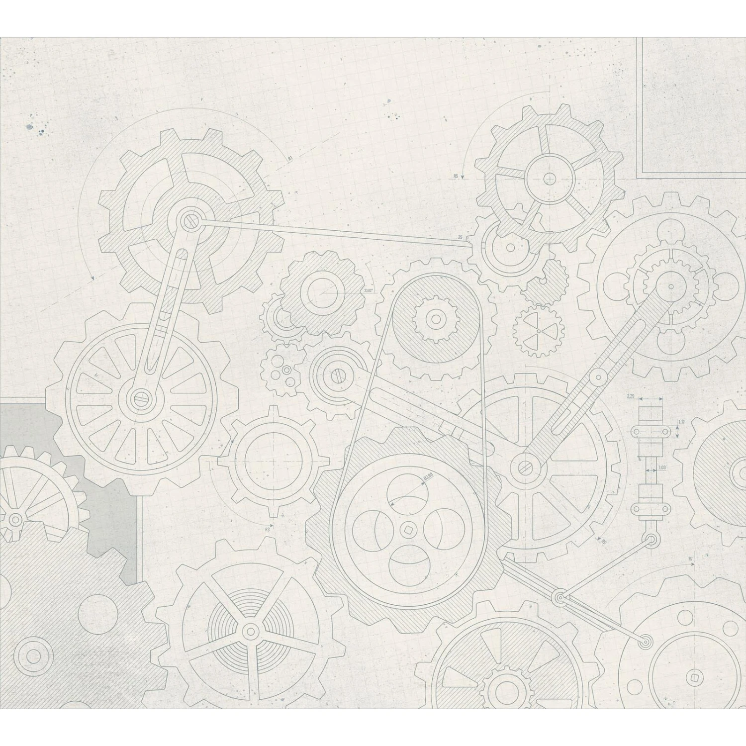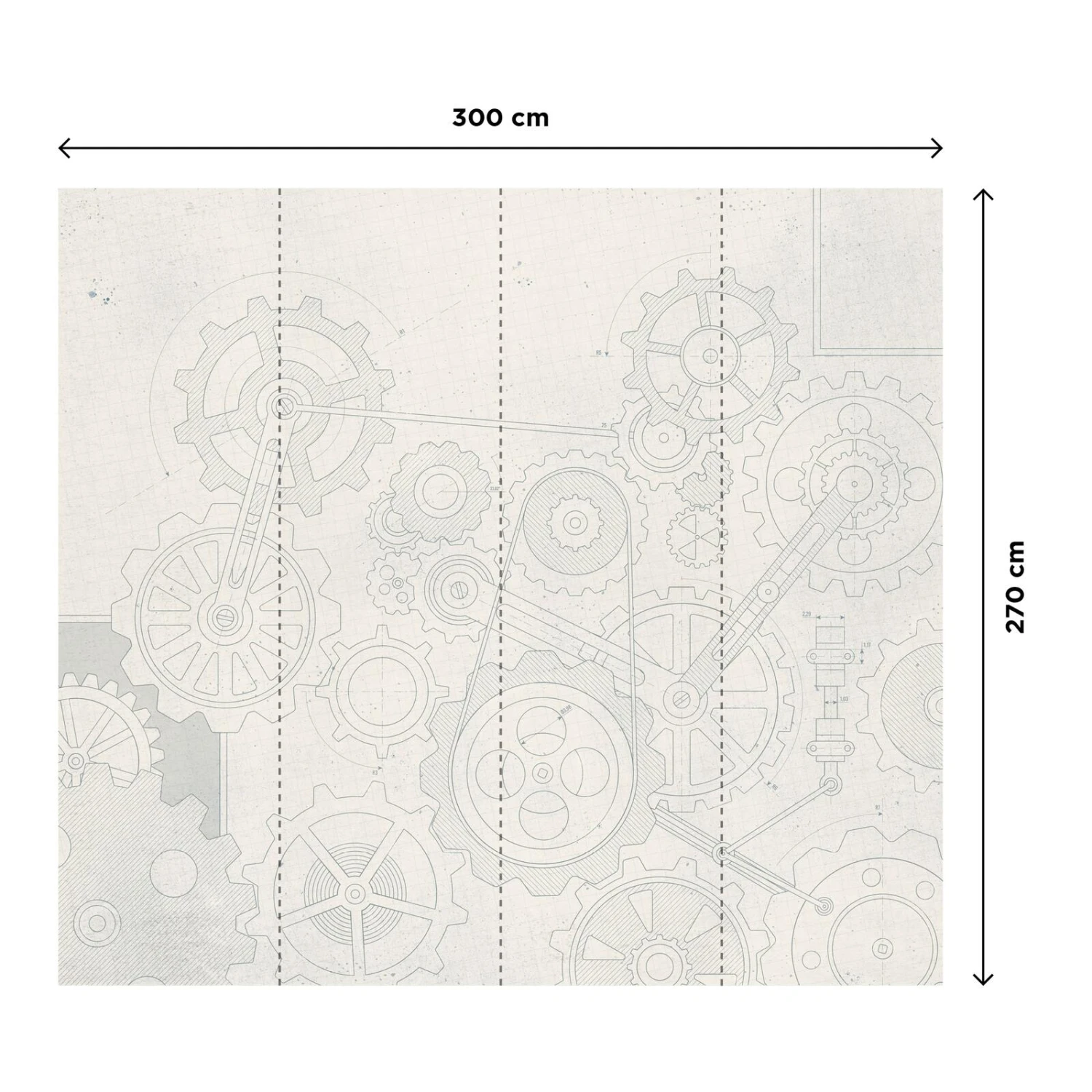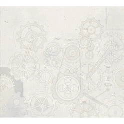 Le décor mural panoramique ENGRENAGES gris bleuté présente un aspect légèrement vieilli, ce qui lui donne encore plus d’authenticité. Il aura sa place dans un salon ou dans une salle à manger avec du mobilier moderne et épuré.