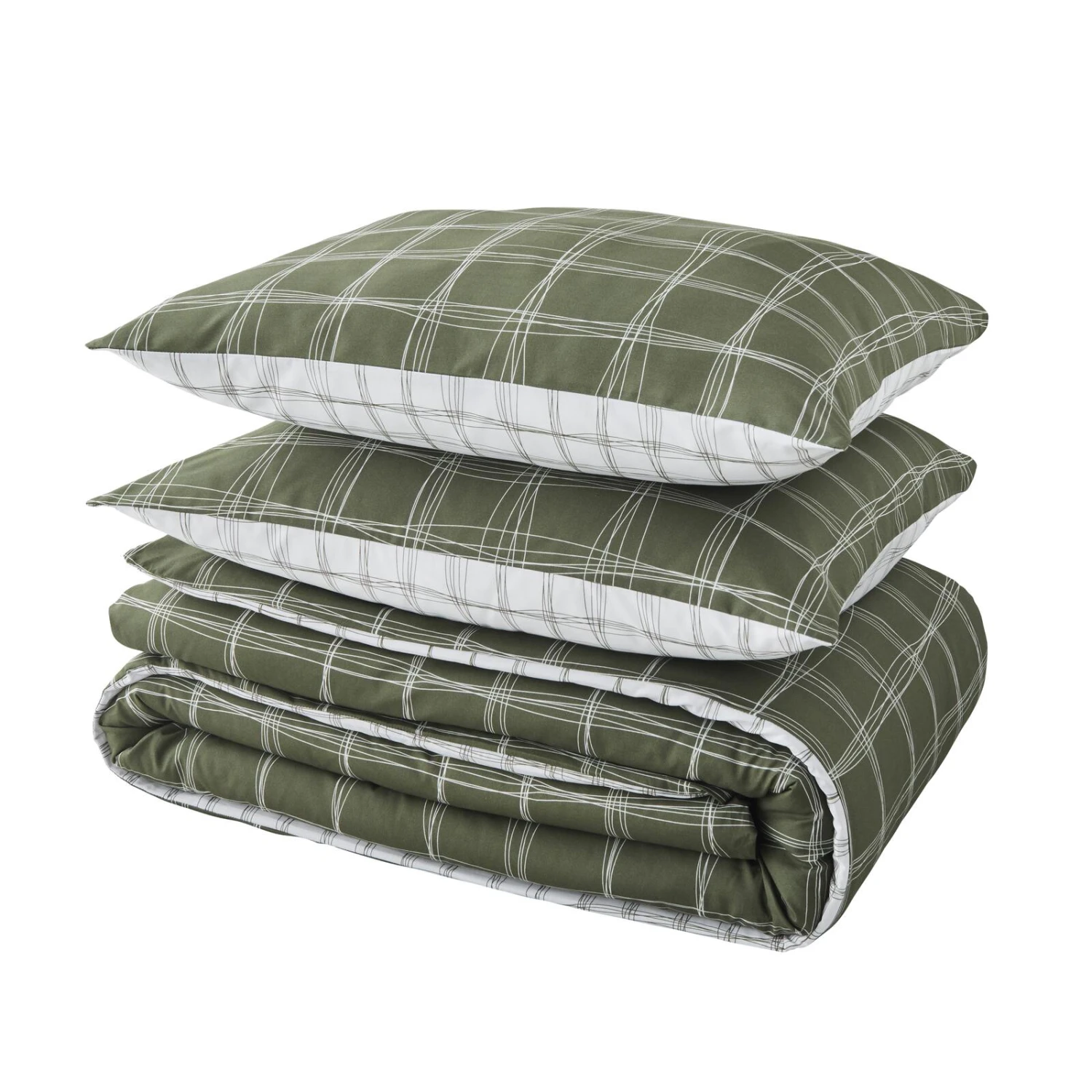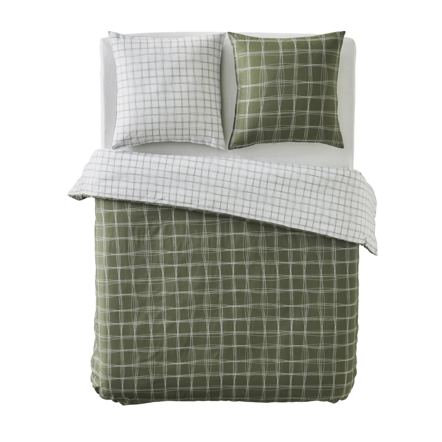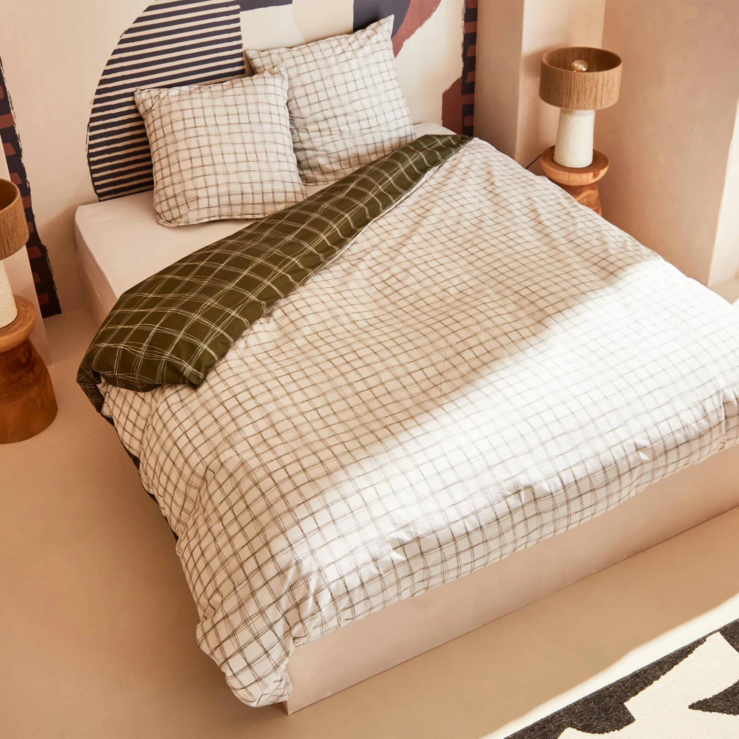 Des lignes blanches forment un quadrillage épuré sur un fond vert profond et donnent à ces draps un look casual. Look qui, vous en conviendrez, est à sa place dans de nombreuses décorations d’intérieur. Si vous préférez les rayures vertes sur fond blanc, c’est possible avec une seule et même parure ! Et oui, sachez que les draps GABRIEL sont réversibles. Malin, n’est-ce pas ! De quoi varier les plaisirs et changer sa déco en un tour de main. Ou plutôt, en un tour de draps.