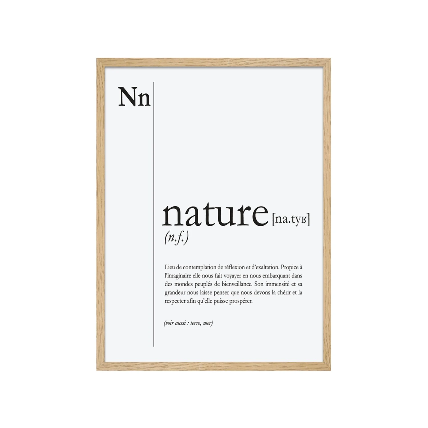 Optez pour ce tableau NATURE à la fois sobre et original pour orner vos murs avec délicatesse ! La définition du mot « nature » y est inscrite de façon tout à fait subtile et nous décrit la nature avec beaucoup de philosophie ! Un message plein de sens, qui met à l’honneur le bien être et qui s’inspire de l’art de vivre à la scandinave.