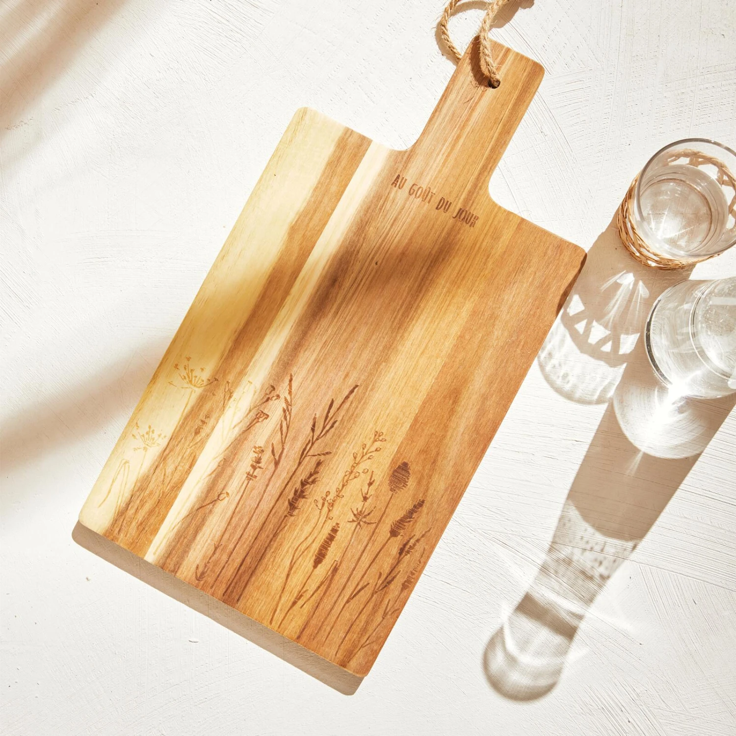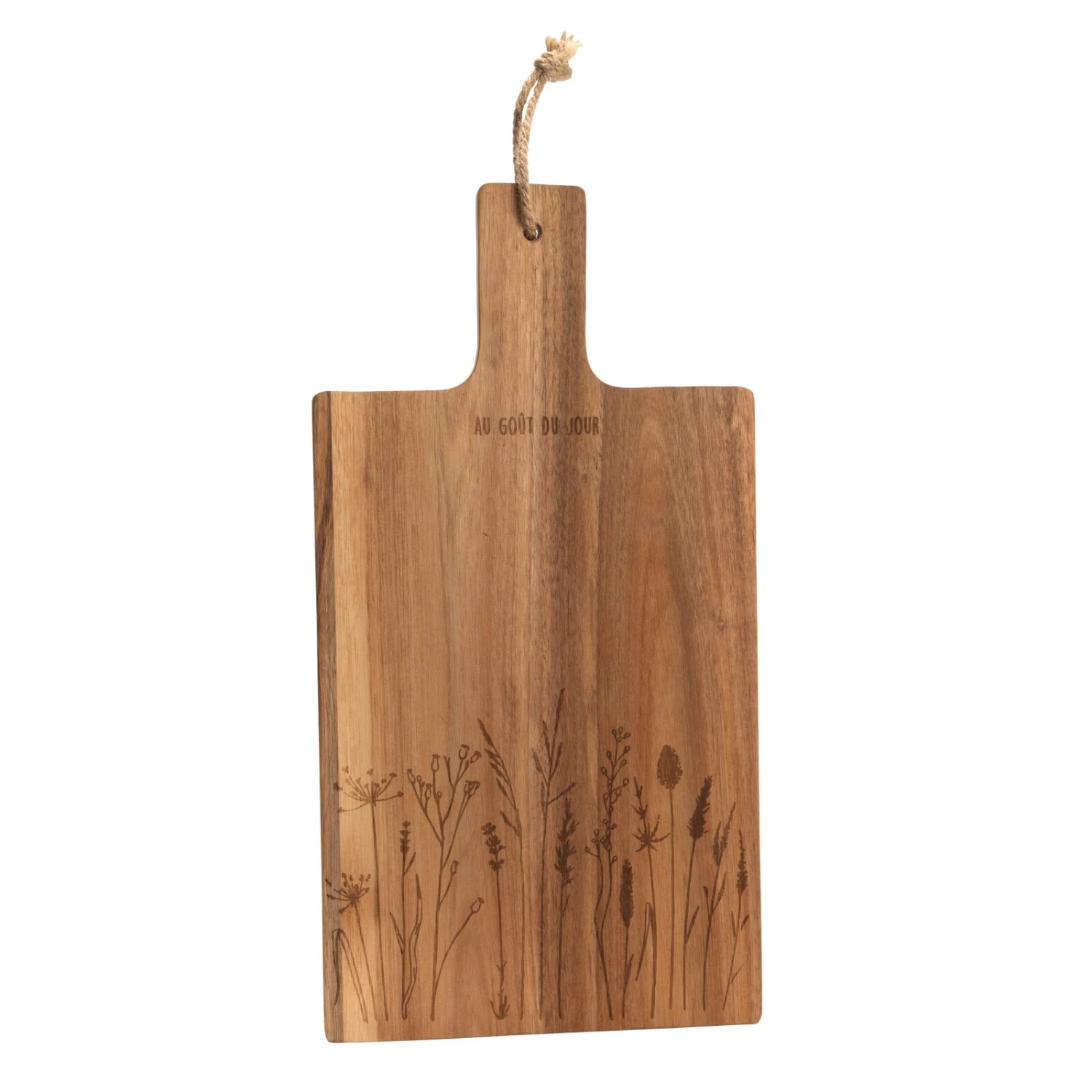 La planche GOÛT DU JOUR est l’allié de vos plaisirs gustatifs. Son bois d’acacia est robuste et vous permet de couper vos aliments proprement et en toute sécurité. Si vous la cherchez, vous la trouverez soit appuyée sur le plan de travail, soit suspendue à une barre.