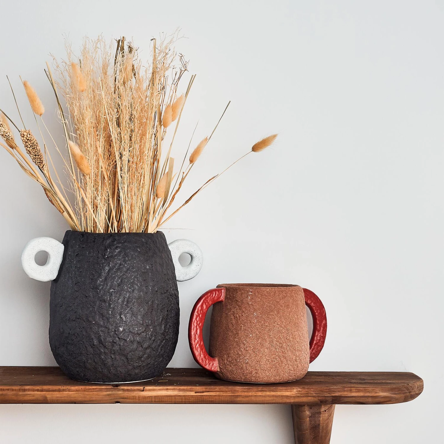 Le vase BEND en céramique gris semble tout droit sorti de l’atelier. Il nous rappelle une déco ethnique et originale. Ses petites oreilles blanches apportent la touche amusante au vase.
