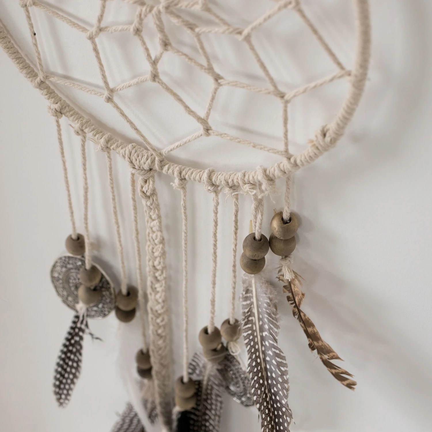 Dans la culture amérindienne, ils captent les mauvais songes pendant la nuit pour ne laisser que les plus beaux… Romantique, naturel et tendance, cet attrape-rêve sublimera délicatement votre déco !