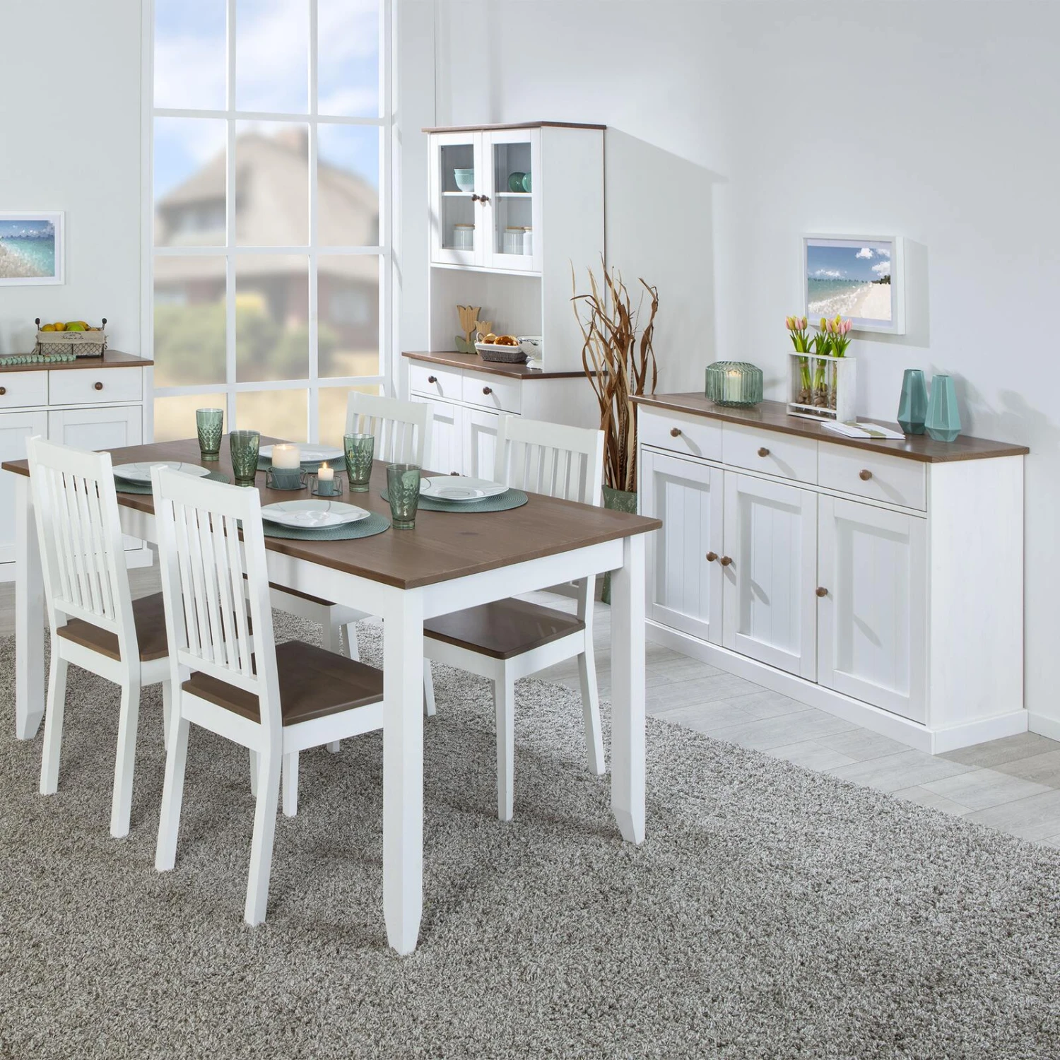 Le contraste entre le blanc de la structure du meuble et la couleur bois naturelle du plateau et des poignées apporte une touche déco supplémentaire. Vous pouvez associer le meuble ABEL à une table de salle à manger en bois blanc ou dotée d’un plateau en verre. Sur le buffet, disposez une lampe, des bougies, un vase en céramique avec des fleurs séchées et tout autre élément de décoration accentuant l’esprit romantique de la pièce.