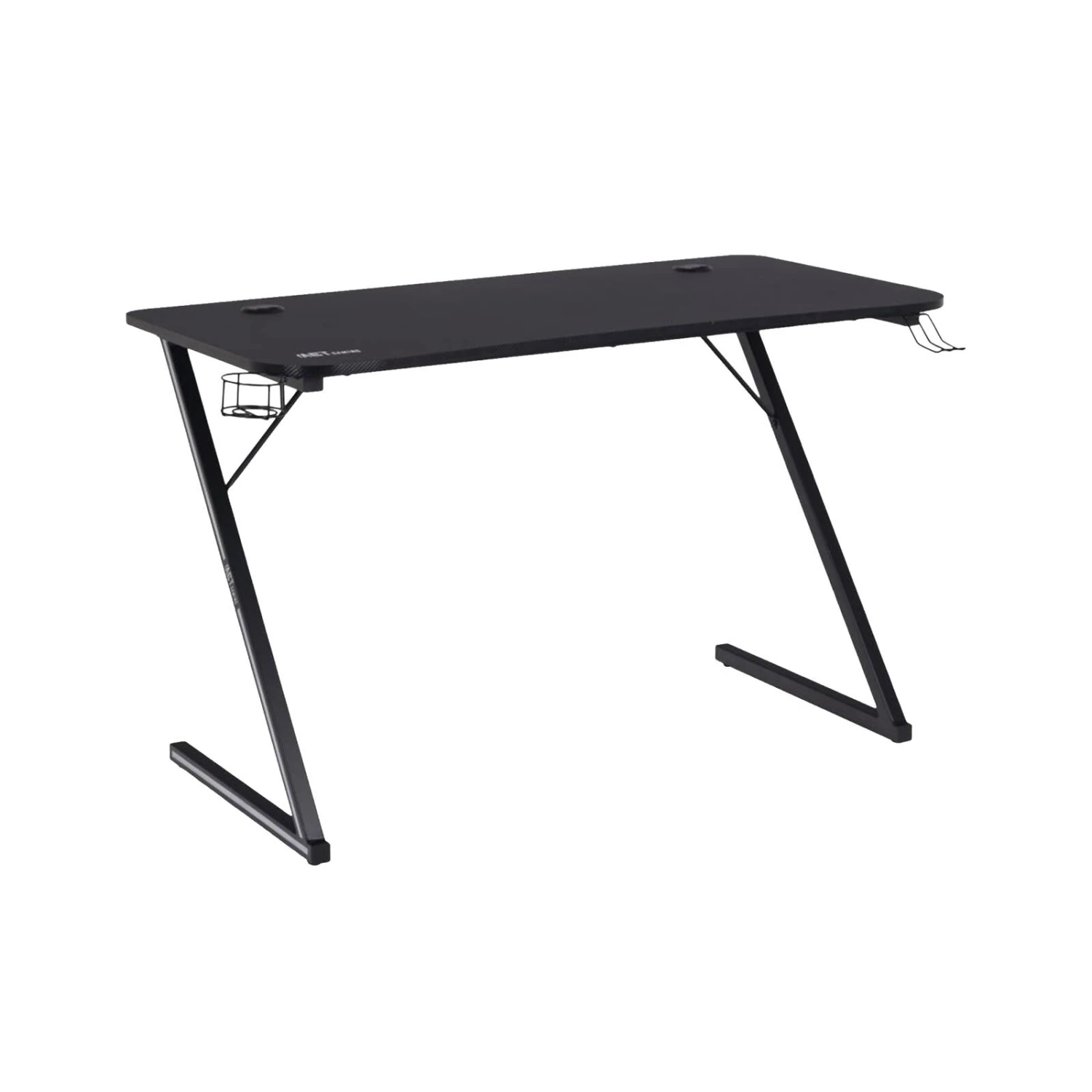 Robuste et résistante aux rayures, la table possède un porte-gobelet, bien pratique pour vos rafraîchissements, ainsi qu’un support pour casque. De plus, ses trous passe-câbles vous permettront de conserver un bureau bien en ordre sans fils apparents.