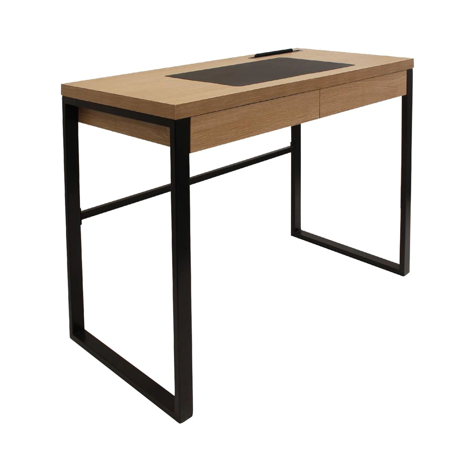 Craquez pour ce bureau BECKETT en chêne plaqué et métal qui allie charme et ingéniosité. Spacieux et malin, il dispose d’un tiroir et d’un sous-main intégré ainsi que d’un joli espace pour y poser aisément votre matériel de bureau. Son encoche très pratique permettra de pouvoir y poser une tablette sans encombrer votre espace de travail. Travaillez ainsi chez vous avec style et dans de bonnes conditions !