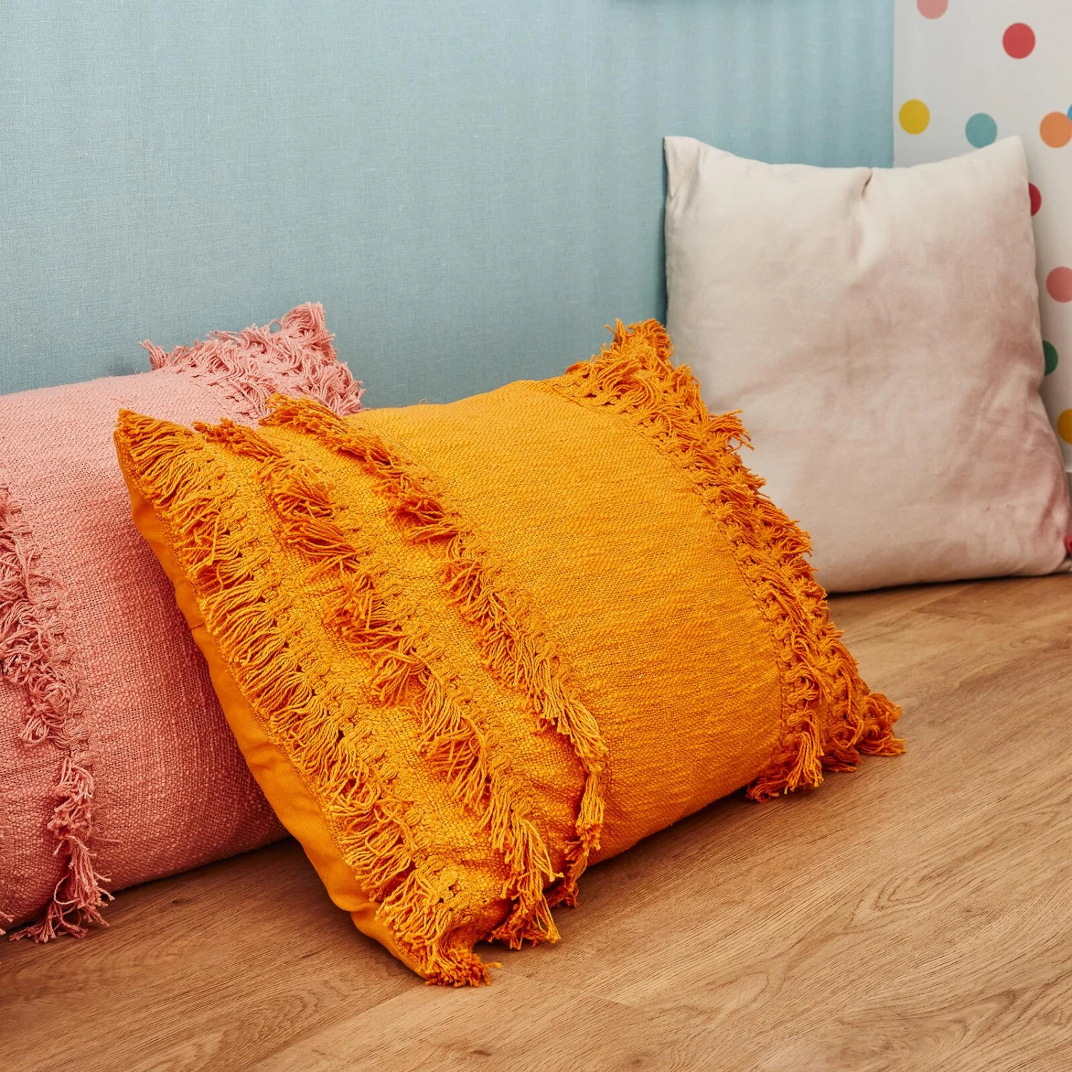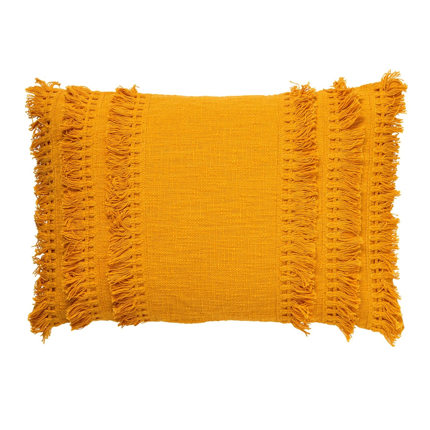 Optez pour l’originalité de ce coussin LARA dans votre intérieur. De coloris jaune et doté de franges de part et d’autre, ce modèle confère un look artisanal et authentique à votre décoration. D’inspiration ethnique il vous fera instantanément voyager. Sans égal pour parfaire avec beaucoup de caractère votre décoration, il s’associera à merveille à des tonalités chaudes et des accessoires d’inspiration bohème et réchauffera votre canapé.