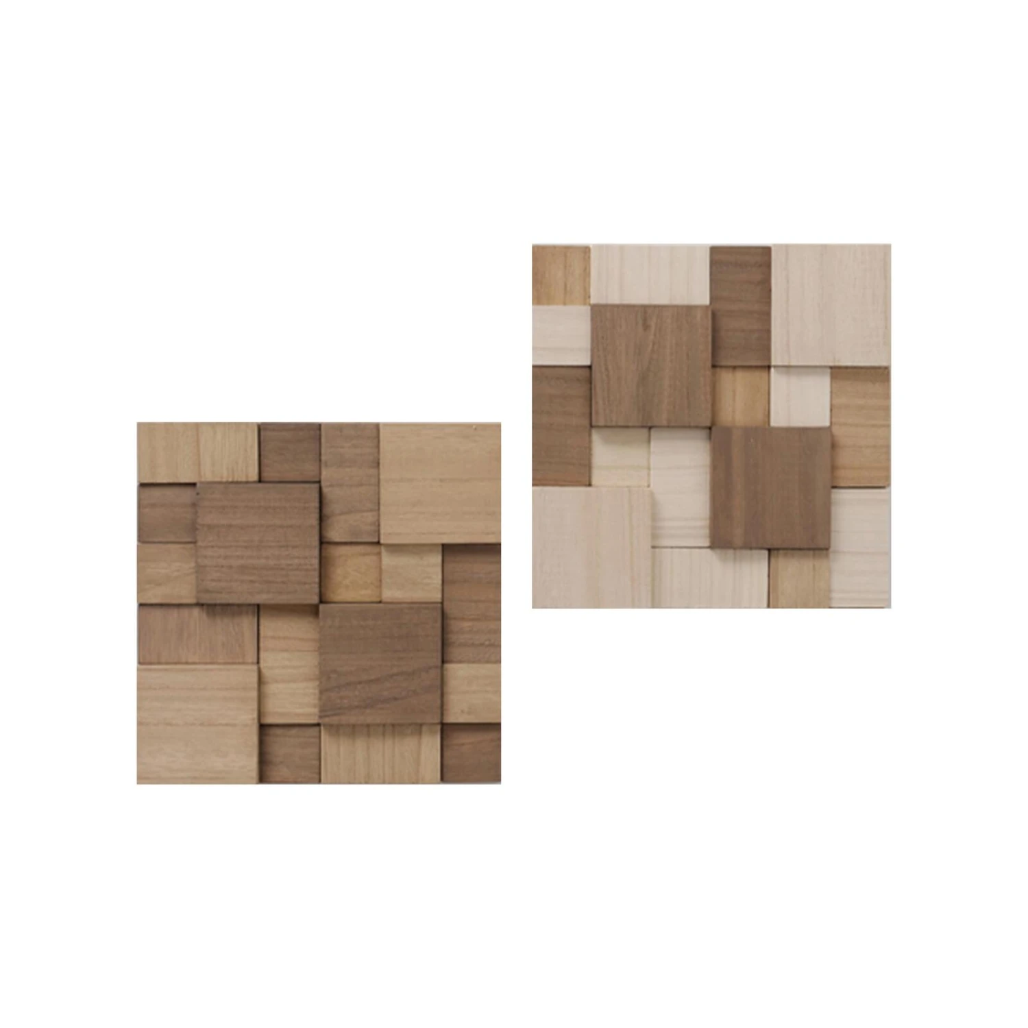 Les génies ont toujours été incompris, alors n’hésitez pas à afficher votre passion dans votre intérieur. Vous avez le choix entre deux modèles de déco murale. Les deux représentent des carrés et rectangles de bois placés les uns au-dessus des autres ou les uns à côté des autres. Le bois du premier modèle est un peu plus foncé que le bois du second.