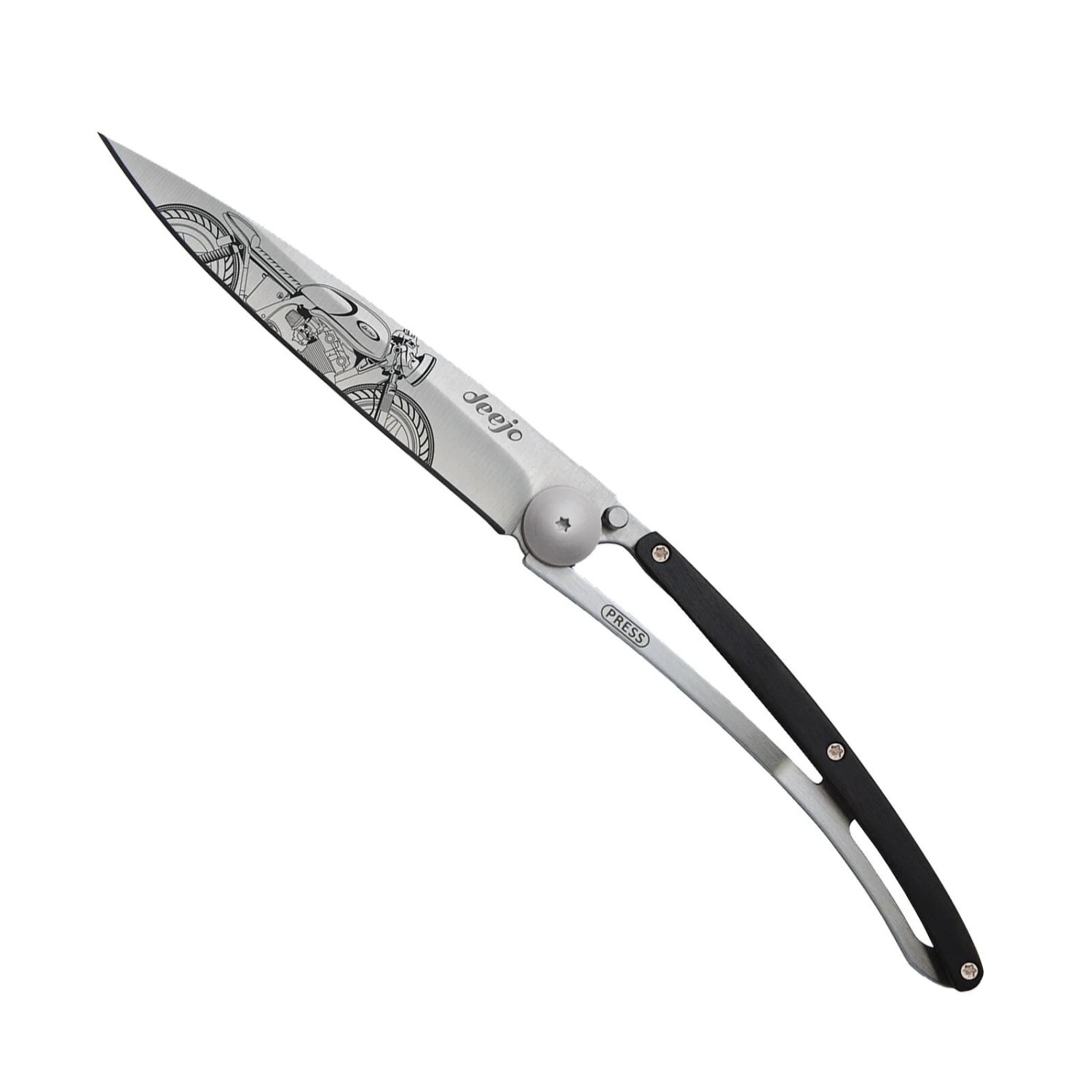 Sur la lame du couteau CAFE RACER Deejo, retrouvez la silhouette épurée et élancée des motos éponymes. Grâce à cette illustration faite au laser, le couteau arbore une allure unique.