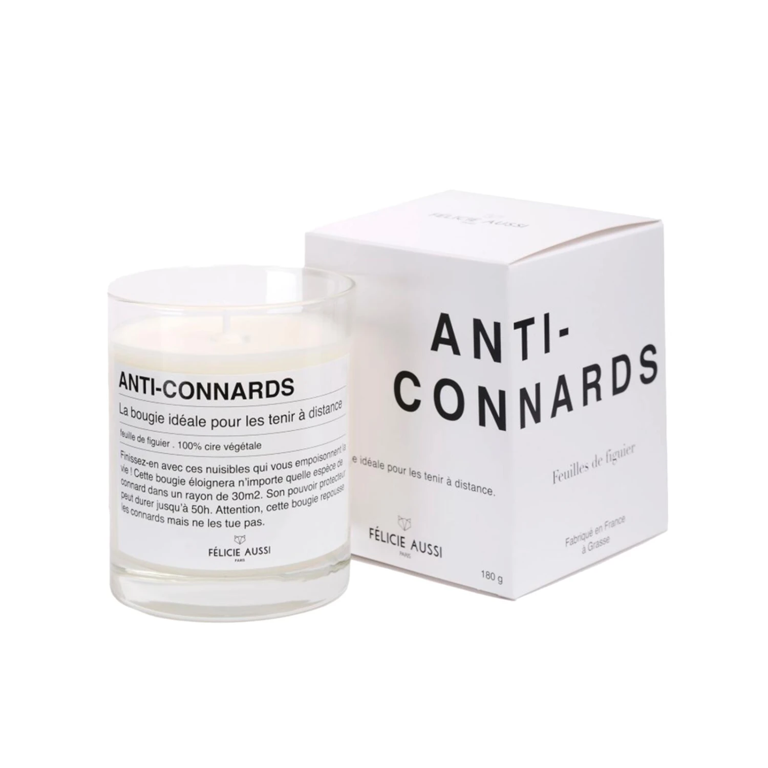 On connaît toutes et tous quelqu’un qui en aurait bien besoin. C’est vrai, qui n’a jamais voulu s’en débarrasser ? Efficace jusqu’à 50h, la bougie ANTI-CONNARDS vous protège de ces nuisibles sur la durée. Son parfum feuilles de figuier agit comme un véritable bouclier tout en vous offrant une bulle de confort. Allumez-la et vous verrez !