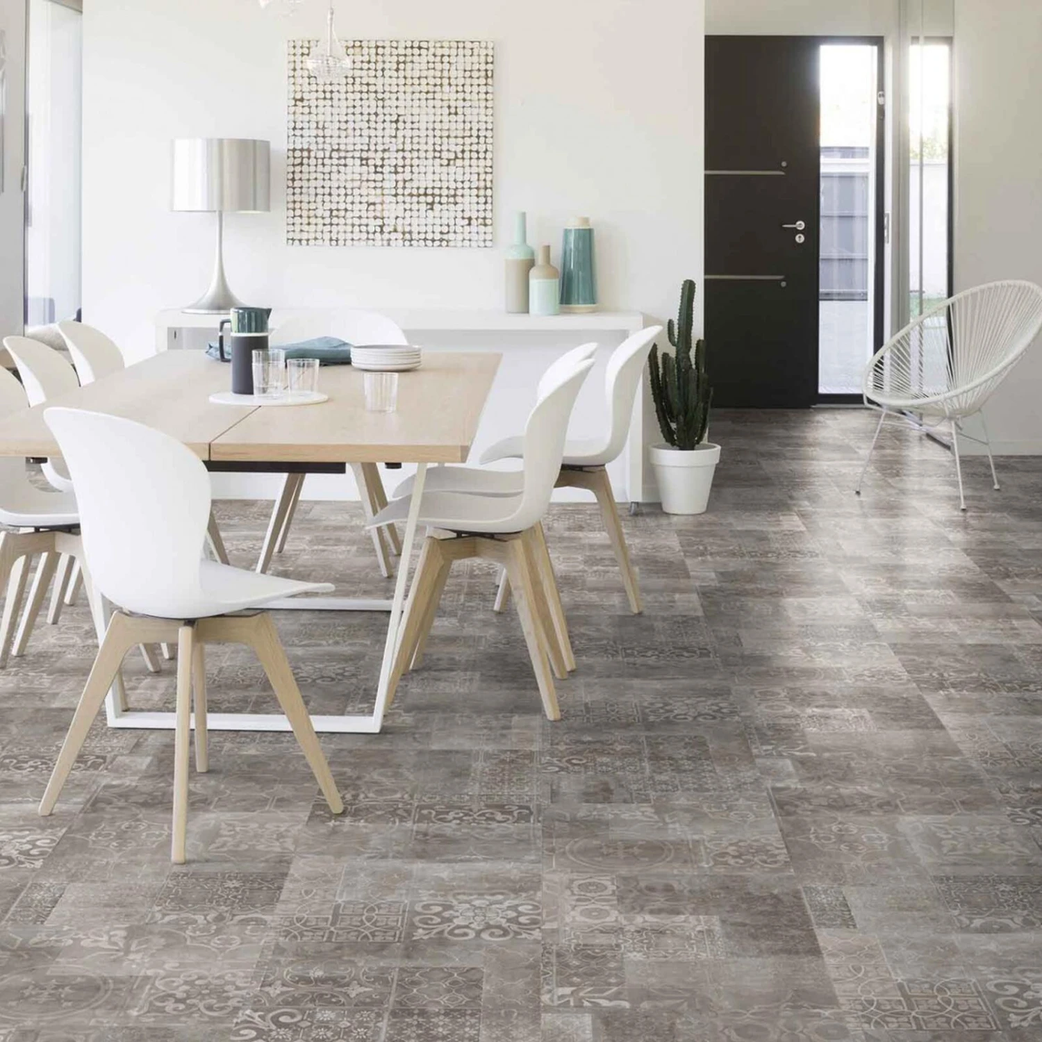 Faites le choix de la qualité et du charme des carreaux de ciment avec les lames vinyles VIRTUO 55 CLIC LORCA BEIGE, pour un sol facile d’entretien. Cette imitation de matériaux bluffante mêlant différents motifs de carreaux de ciment dans les teintes beiges, apporte beaucoup de caractère à votre pièce. Le réalisme et le rendu des couleurs haute définition ajoute une dimension authentique chez vous, pour un intérieur empli de charme et d’histoire.