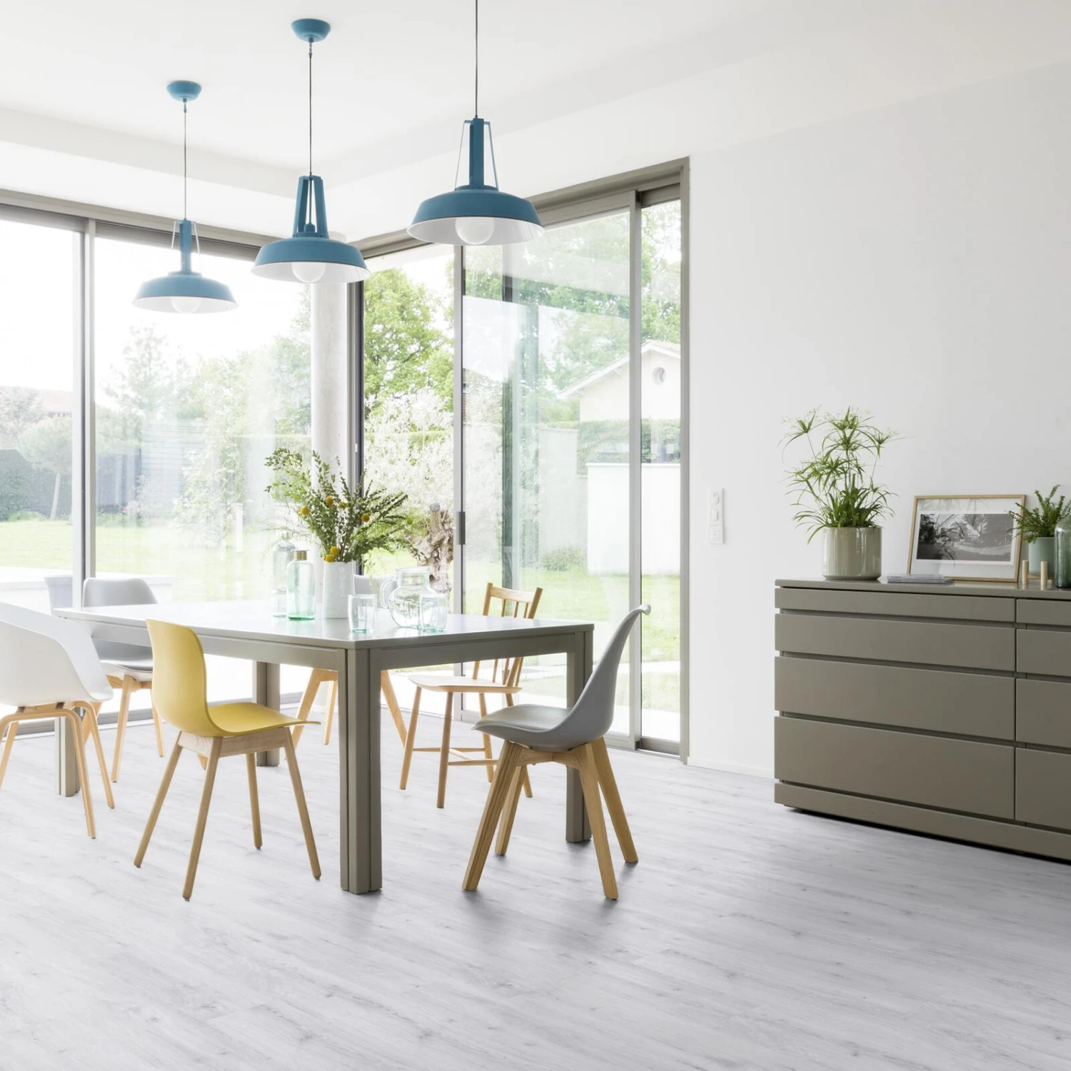 Faites le choix de la qualité et du charme au naturel avec les lames vinyles VIRTUO 55 CLIC SUNNY WHITE, pour un effet de bois blanchi. Les nervures du bois, qui apparaissent sur ce modèle avec beaucoup de réalisme et un rendu des couleurs haute définition, apporteront de l’authenticité à votre sol. Son coloris blanc très lumineux crée une atmosphère propice à la détente.