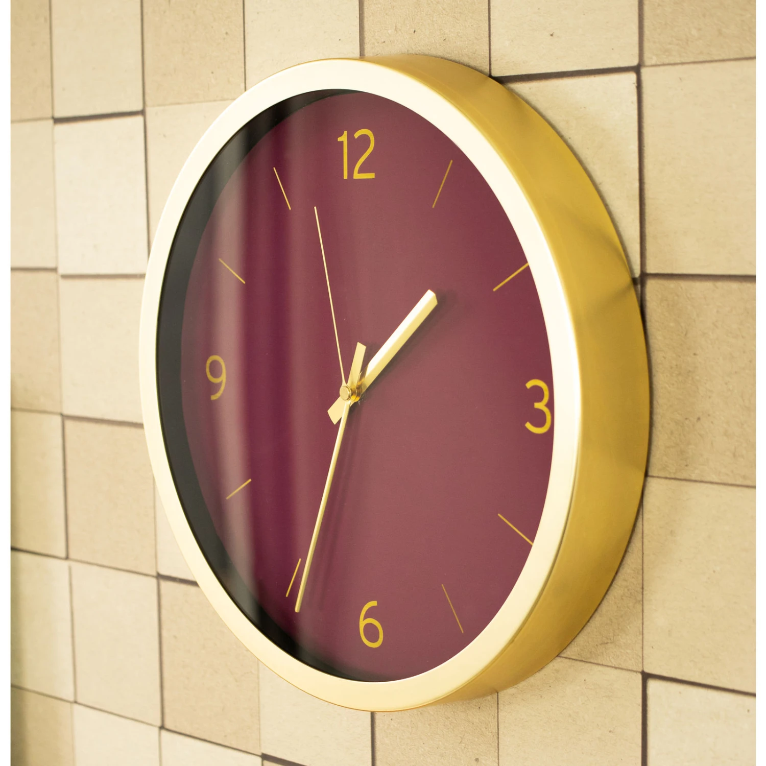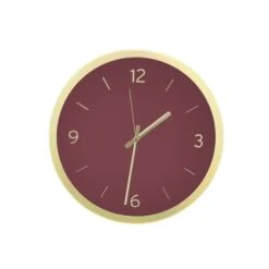 Laissez-vous tenter par l’horloge PIA ! Son cadre rond en métal doré ainsi que ses gros chiffres dorés apportent beaucoup d’élégance et de douceur à ce modèle. Son côté vintage, marqué autant par son design que par son coloris bordeaux offre une note très déco à votre intérieur. Vous serez également séduits par son mécanisme silencieux.