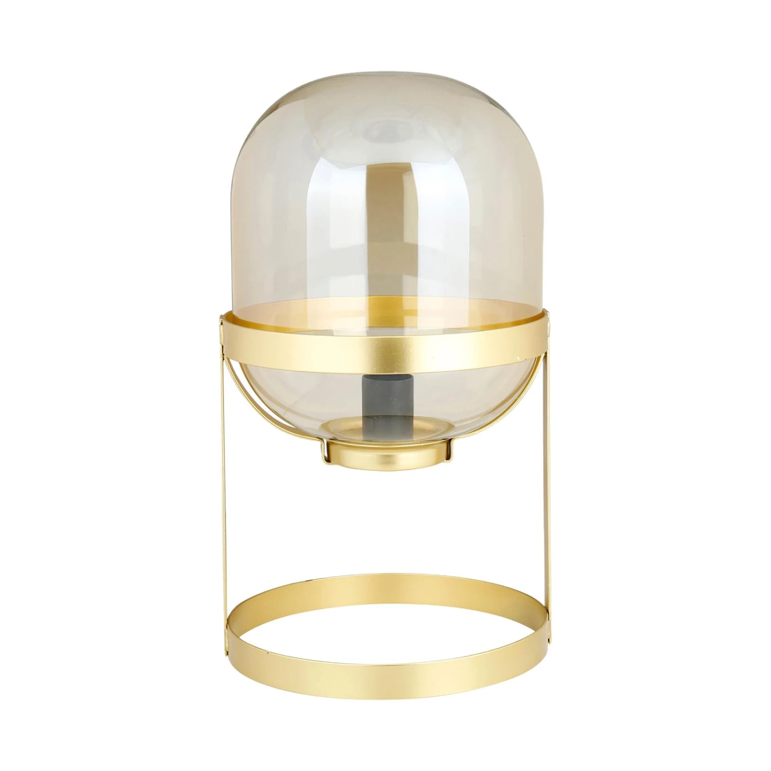 Le verre et le métal doré se rencontrent ici et forment un couple adorable qui donne toute son élégance à la lampe à poser BALL. Sur un socle cylindrique et ajouré tout d’or vêtu, se pose délicatement une boule en verre légèrement fumé.