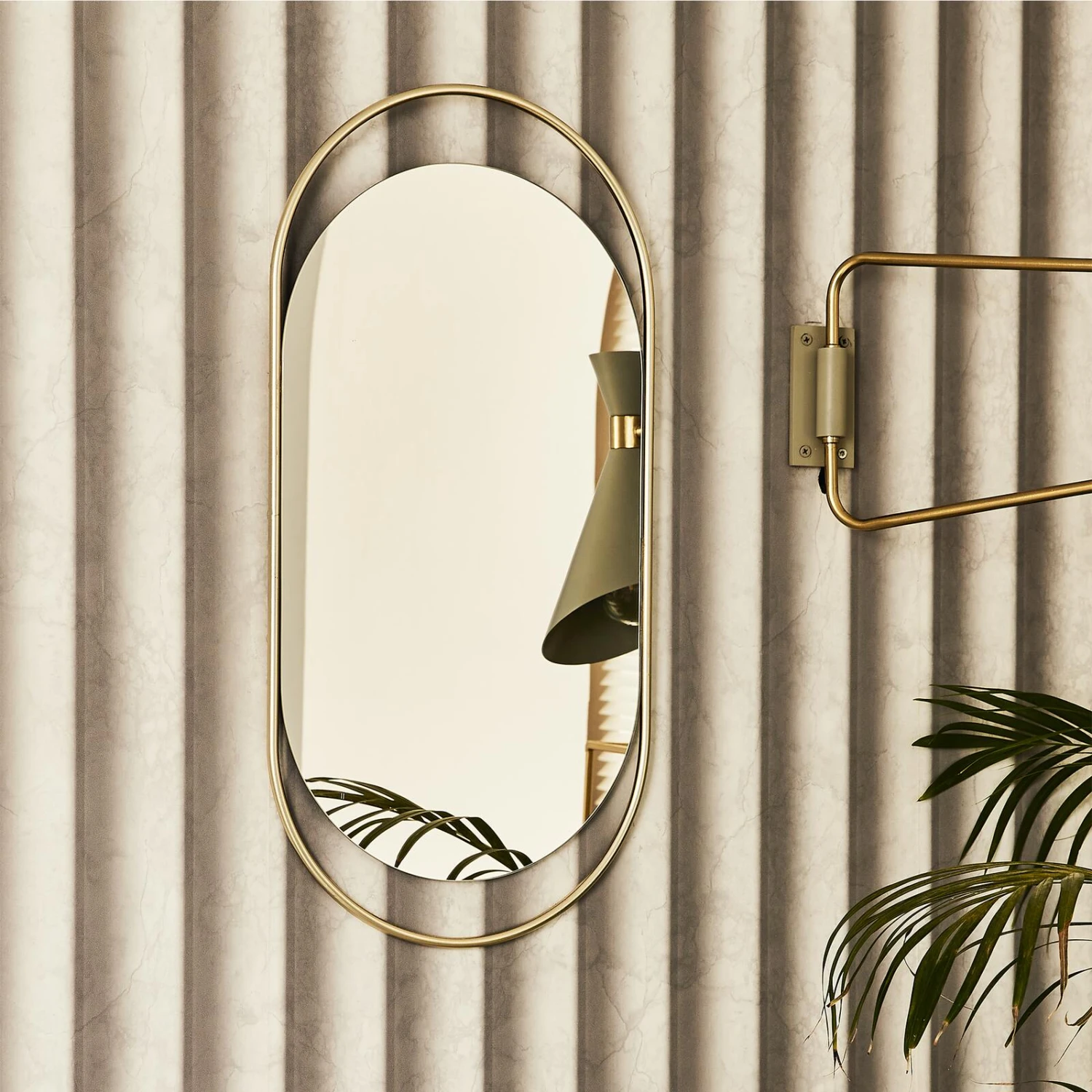 Est-il nécessaire d’aller voir de l’autre côté du miroir lorsque le côté face que vous avez devant vous est extrêmement plaisant ? Le miroir ovale en métal doré CASTILLE vous donnera envie de rester planter devant pour l’admirer (ou vous admirer).