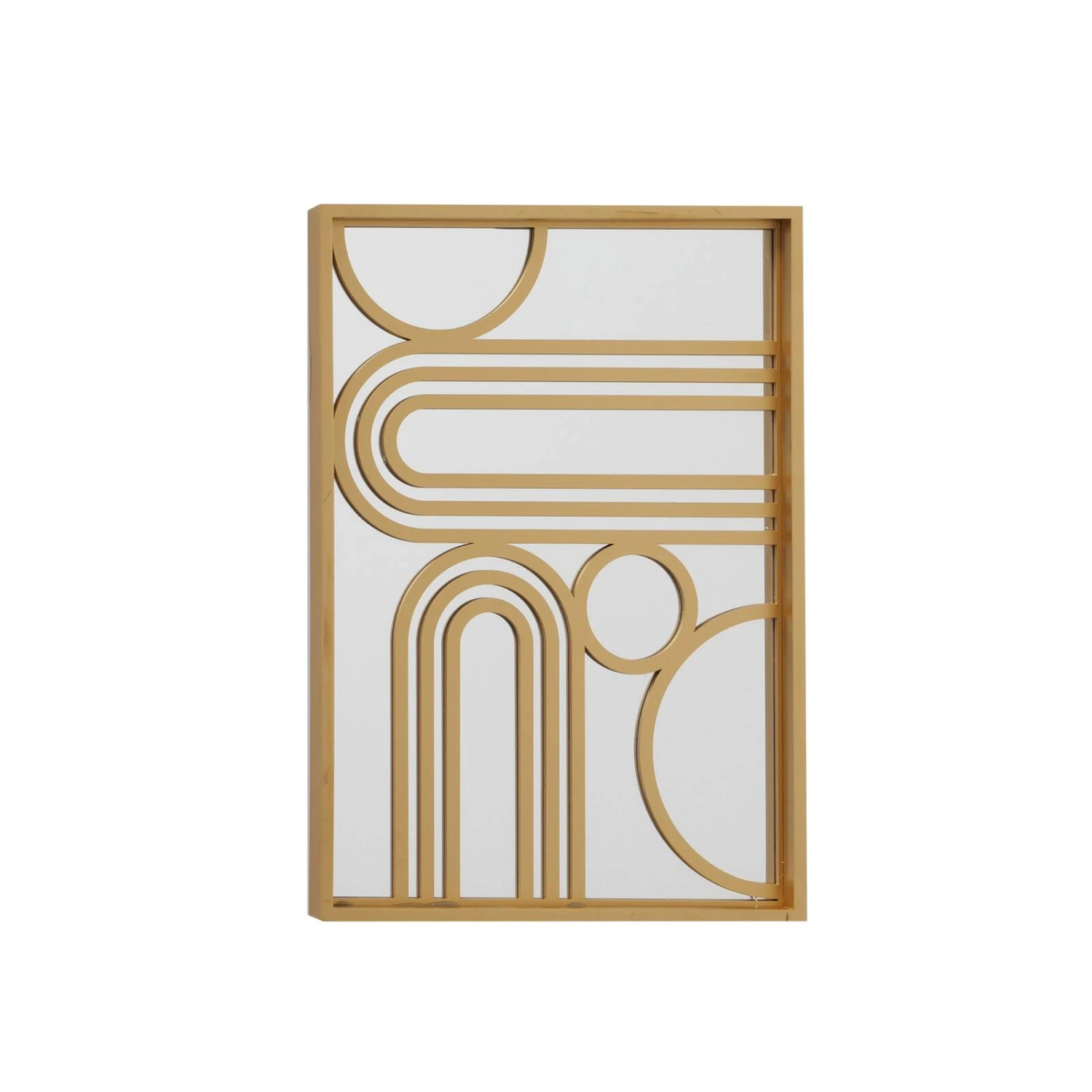 Deux motifs semblables entre eux sont enfin présents sur le miroir. Il s’agit d’un groupe de trois lignes qui dessinent un virage en épingle à cheveux, et rappellent ainsi un arc-en-ciel. L’un de ces chemins est tracé à l’horizontale, et l’autre à la verticale.