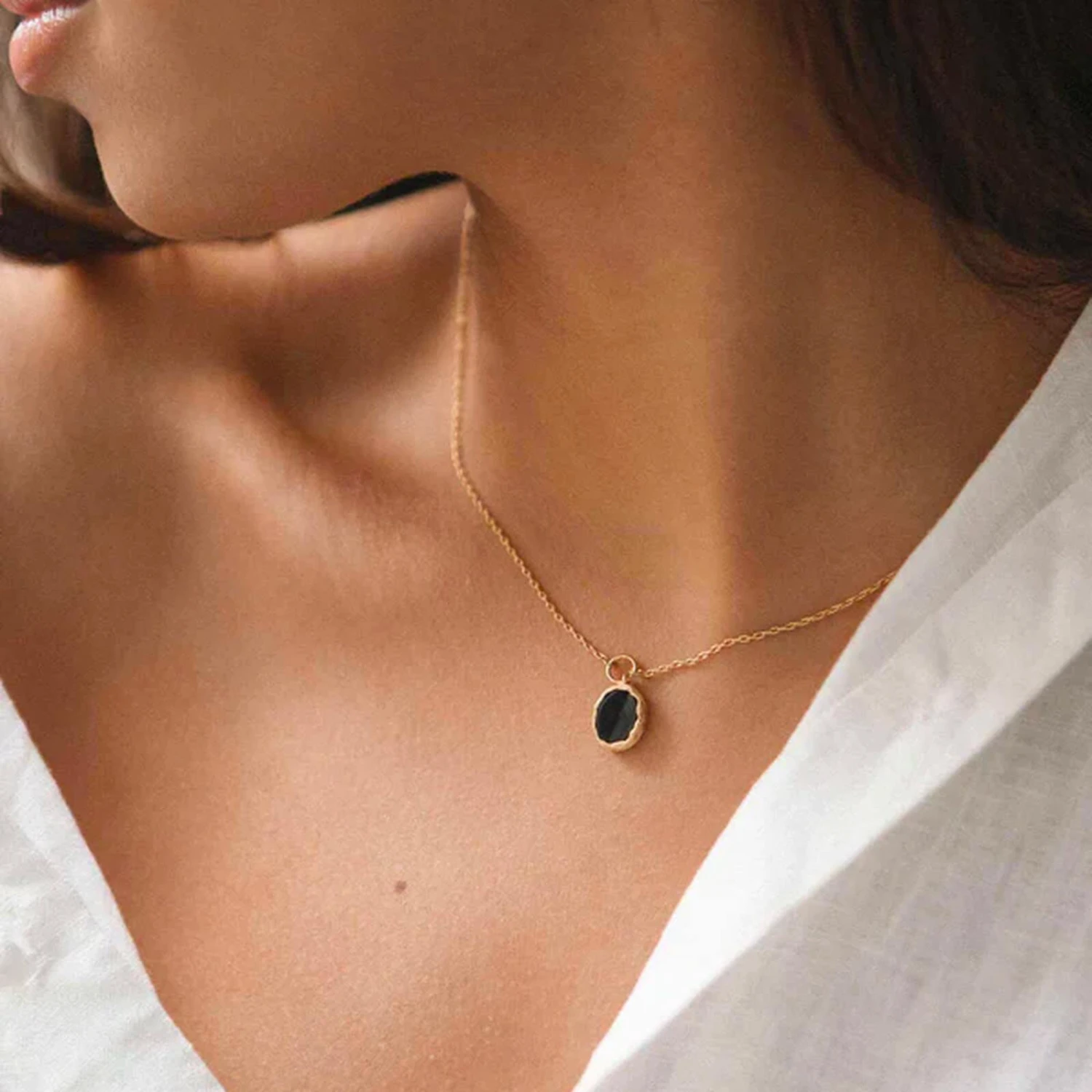 La bougie bijoux LE POUVOIR DES PIERRES ONYX NOIRE vous transporte de par ses effluves de Freesia, de Jasmin et de Musc et renferme un charmant collier en or orné de la pierre Onyx Noire qui renforce l’estime de soi et la gestion de sa prise de parole.
