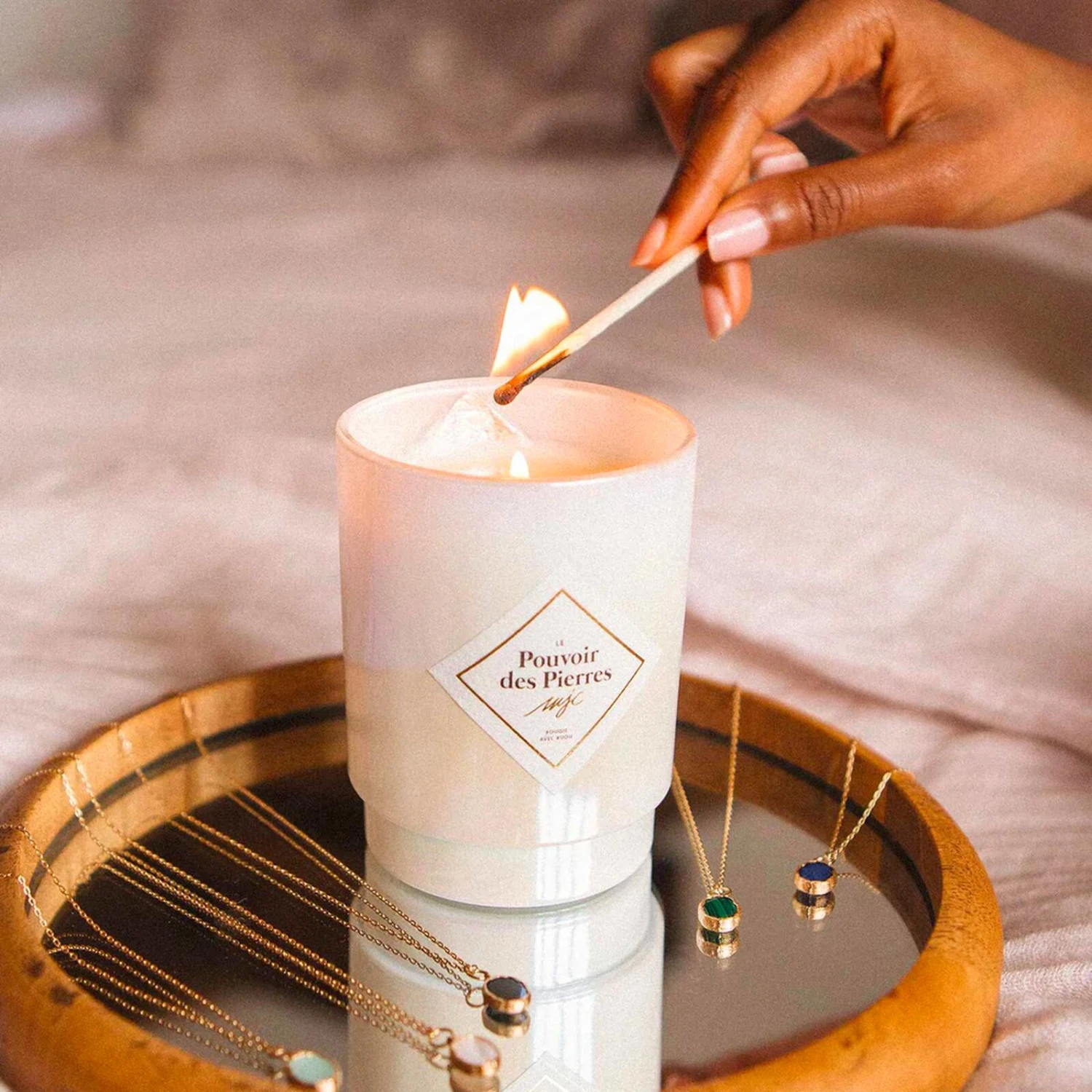 2 en 1, la bougie bijoux LE POUVOIR DES PIERRES est à la fois un objet subtilement odorant pendant son brûlage et un coffret à bijoux. Son utilisation se fait en deux temps distincts.