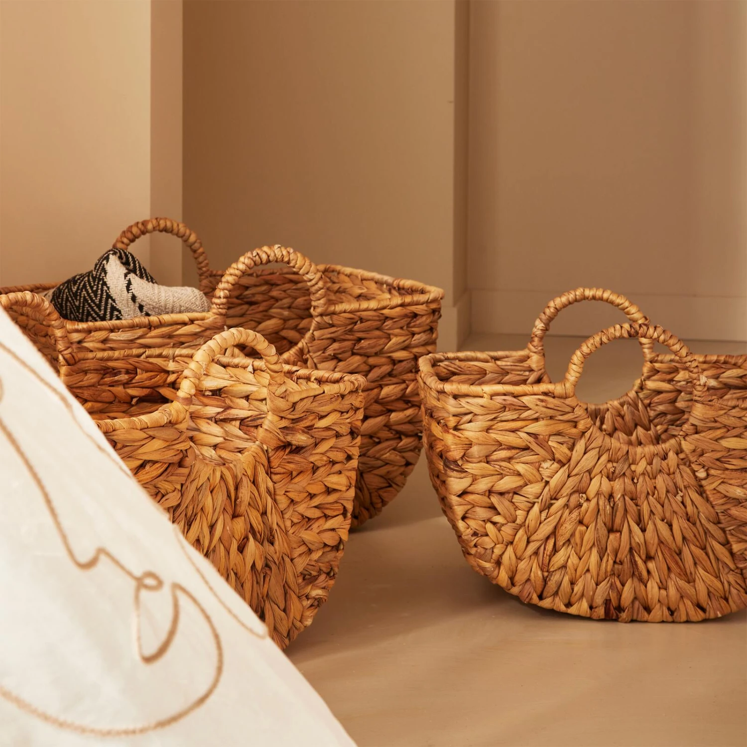 Les paniers en fibre naturelle ne sont pas réservés aux virées sur le marché du samedi matin. Avec le lot de trois paniers JACINTHE D’EAU, ces accessoires intègrent nos intérieurs avec brio. Leur forme, leurs anses et leurs tailles différentes donnent un style intemporel à ces paniers fabriqués à la main.