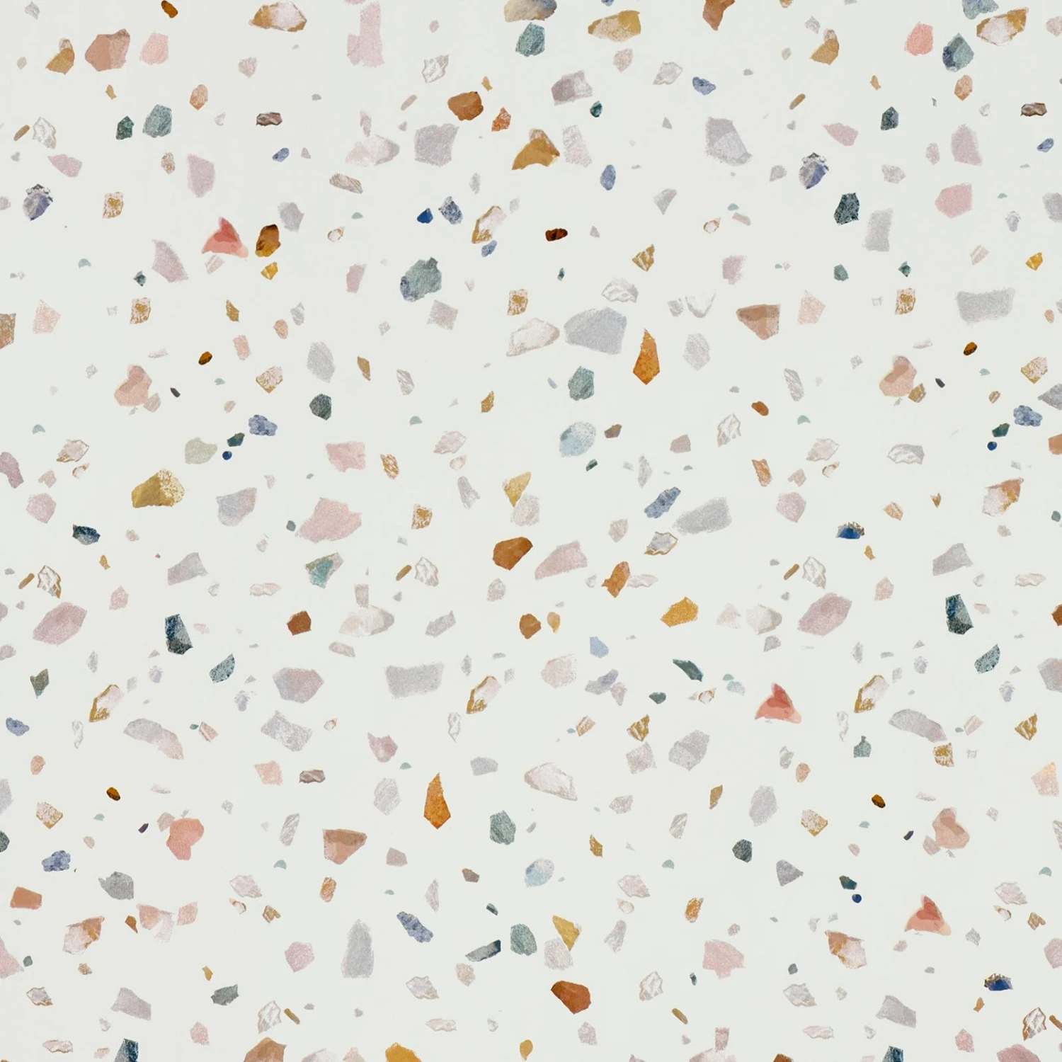 Ce modèle d’intissé ELISA imite à la perfection le terrazzo, un subtil mélange de pierres naturelles. Sur ce modèle se mélangent les coloris bleu, terracotta, rose et ocre sur fond blanc pour un rendu chaleureux dans votre pièce.