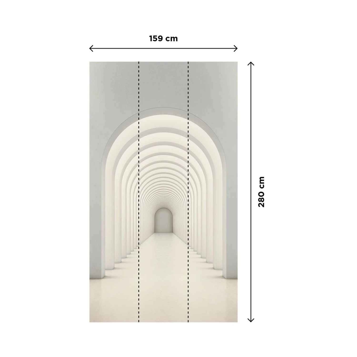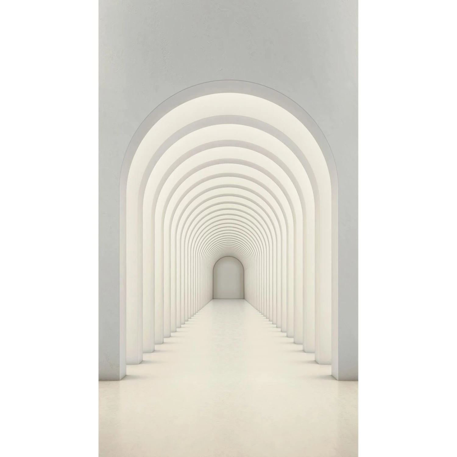Ce poster XXL représentant une enfilade d’arches blanches donne la sensation de pénétrer dans un couloir sans fin. Le papier peint en trompe-l’œil avec effet 3D est idéal dans les petites pièces et les studios. Sa couleur blanche et lumineuse accentue cette sensation d’espace.