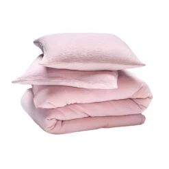 D’un doux rose uni, cette housse de couette et ses deux taies d’oreiller apportent de la douceur à votre chambre grâce à son association de couleurs et sa finition froissée. Le rose pastel offre une ambiance apaisante et chaleureuse et étant une couleur propice à la détente, il serait dommage de s’en priver pour s’endormir ! Cette parure de lit s’accordera avec le style de votre chambre, qu’il soit plutôt scandinave ou dans l’esprit d’une maison de campagne.