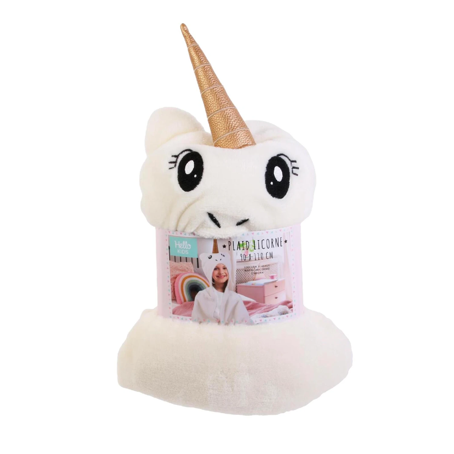 Qui n’a jamais rêvé d’être une licorne ? Le plaid JOLLY va pouvoir réaliser votre rêve, ou du moins, celui de votre enfant !