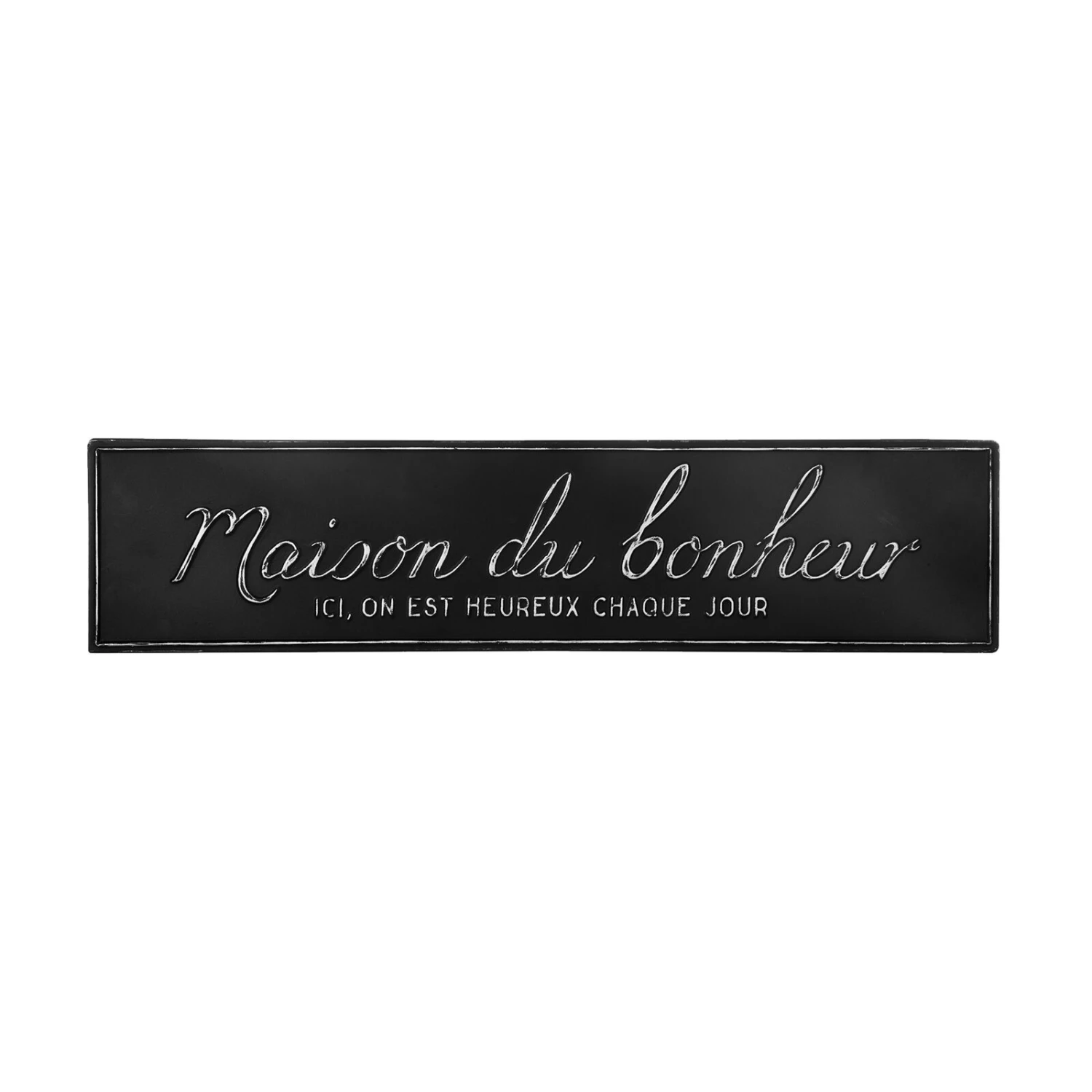 Craquez pour le charme de cette plaque en métal ALIX ! Ses inscriptions rétro apporteront de l’authenticité et de la convivialité à votre intérieur. En coloris noir, elle est très facile à accorder avec d’autres couleurs plus douces pour un style chaleureux et tendance. Parfaite pour habiller les murs de vos pièces à vivre, elle deviendra rapidement l’accessoire déco indispensable pour un foyer où l’on a plaisir à se retrouver et à passer du temps en famille !