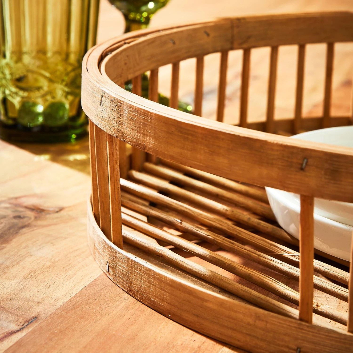 En bambou et rond, il est parfait pour être posé sur une table de salle à manger, sur la table basse de votre salon ou même à l’extérieur, près de votre salon de jardin. Son diamètre de 40 cm le rend suffisamment grand pour contenir le nécessaire à votre pause détente et ses poignées invisibles évitent les catastrophes.