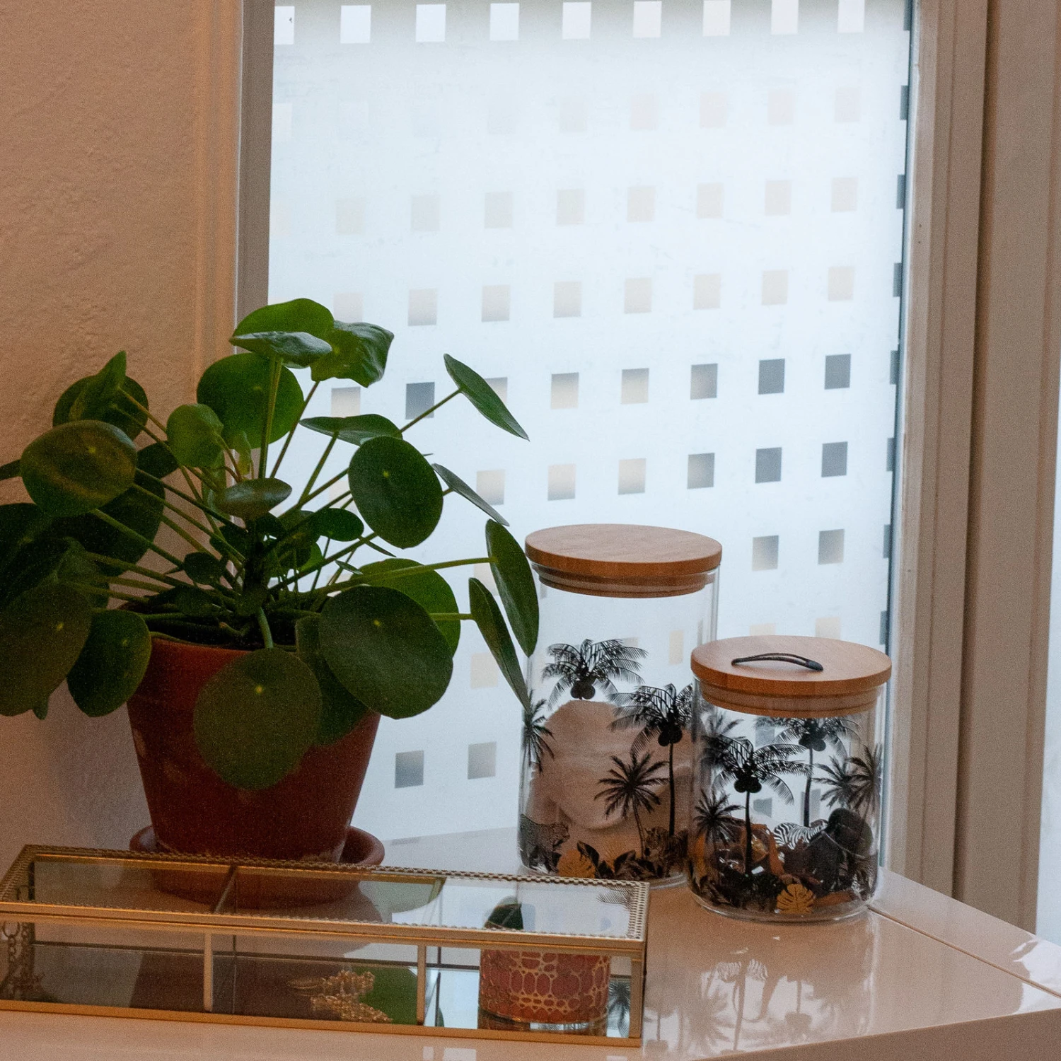 Optez pour ce revêtement adhésif vitrostatique afin d’apporter un nouveau look à vos fenêtres. Il protège également les objets des blanchiments liés aux UV, mais aussi votre peau des rayons UVA. Facile à poser et réutilisable, ce film ne laisse aucune trace sur vos vitrages une fois retiré. Ainsi, personnaliser votre intérieur et créer une déco sur vos vitres devient un jeu d’enfant ! Son design géométrique donné par les multiples carrés apportera une touche moderne à votre intérieur, tout en vous protégeant des regards indiscrets.