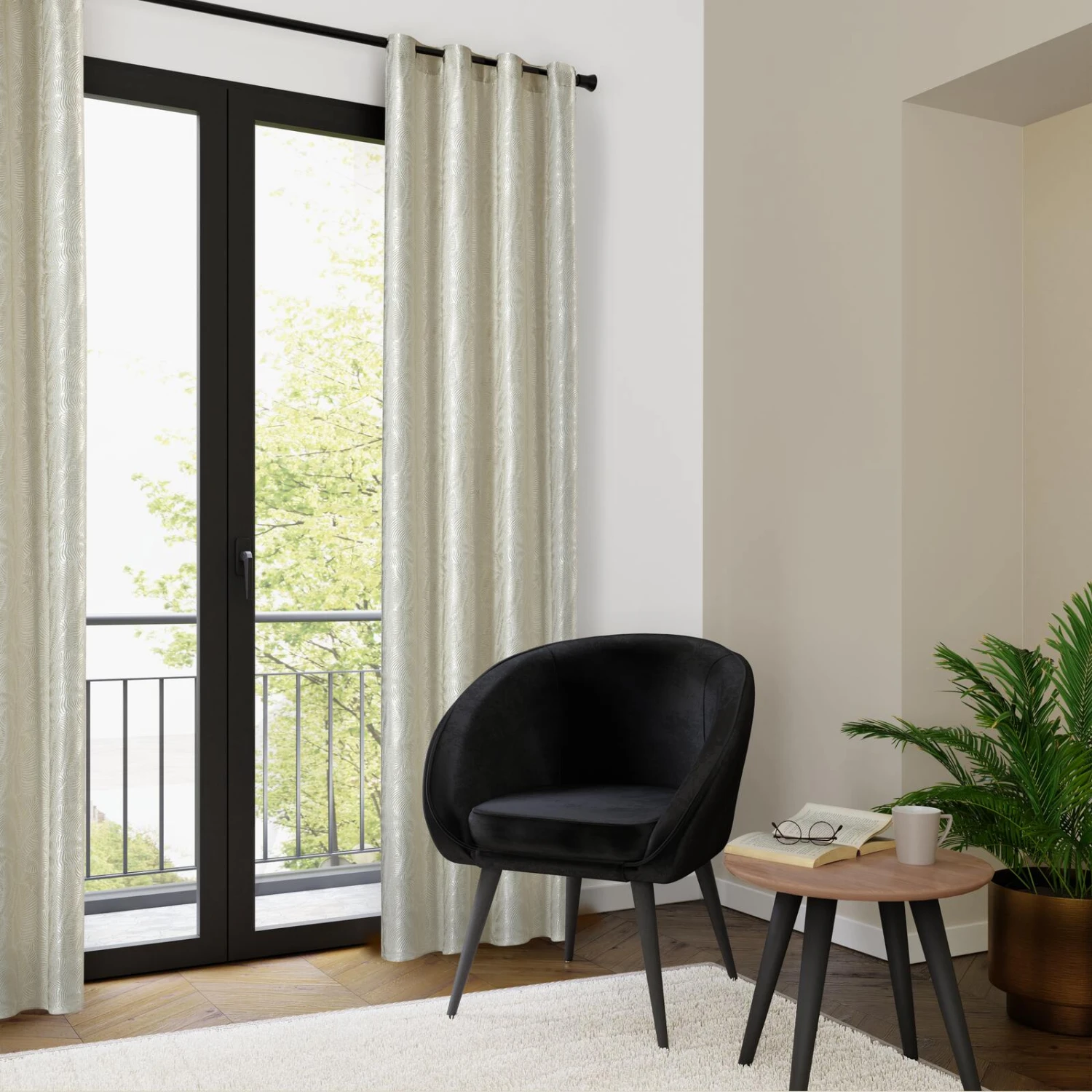 Craquez pour le rideau DONYA décoré d’un très beau motif inspiré de la nature ! Le polyester jacquard dans les tons écru est orné de fins branchages et feuillages semblables aux fougères.