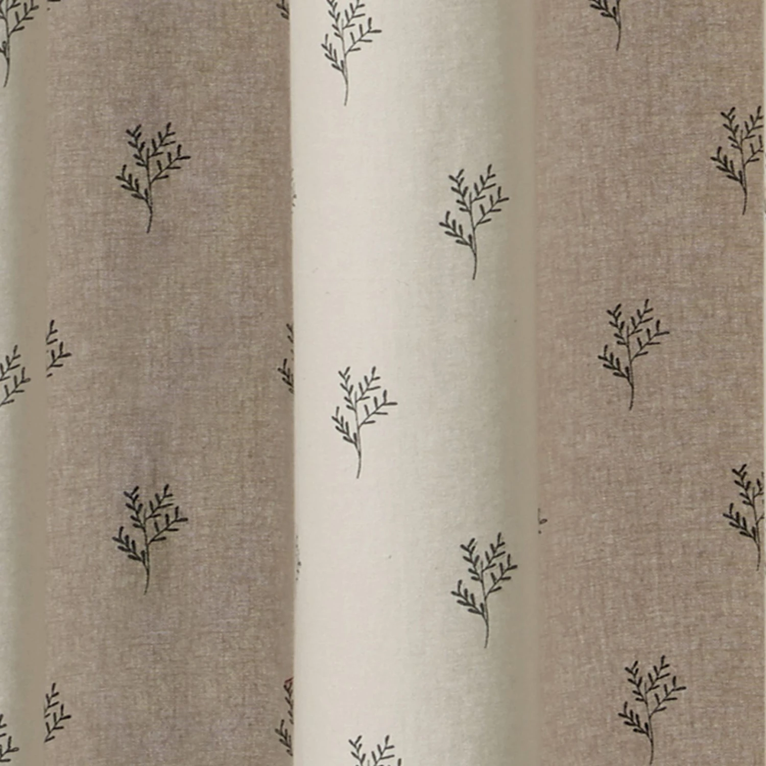 Les branches et feuillages imprimés sur la partie inférieure du tissu coloris taupe confèrent à ce modèle un aspect des plus élégants. La partie supérieure, plus sobre, à l’inscription « home » crée une atmosphère très chaleureuse.