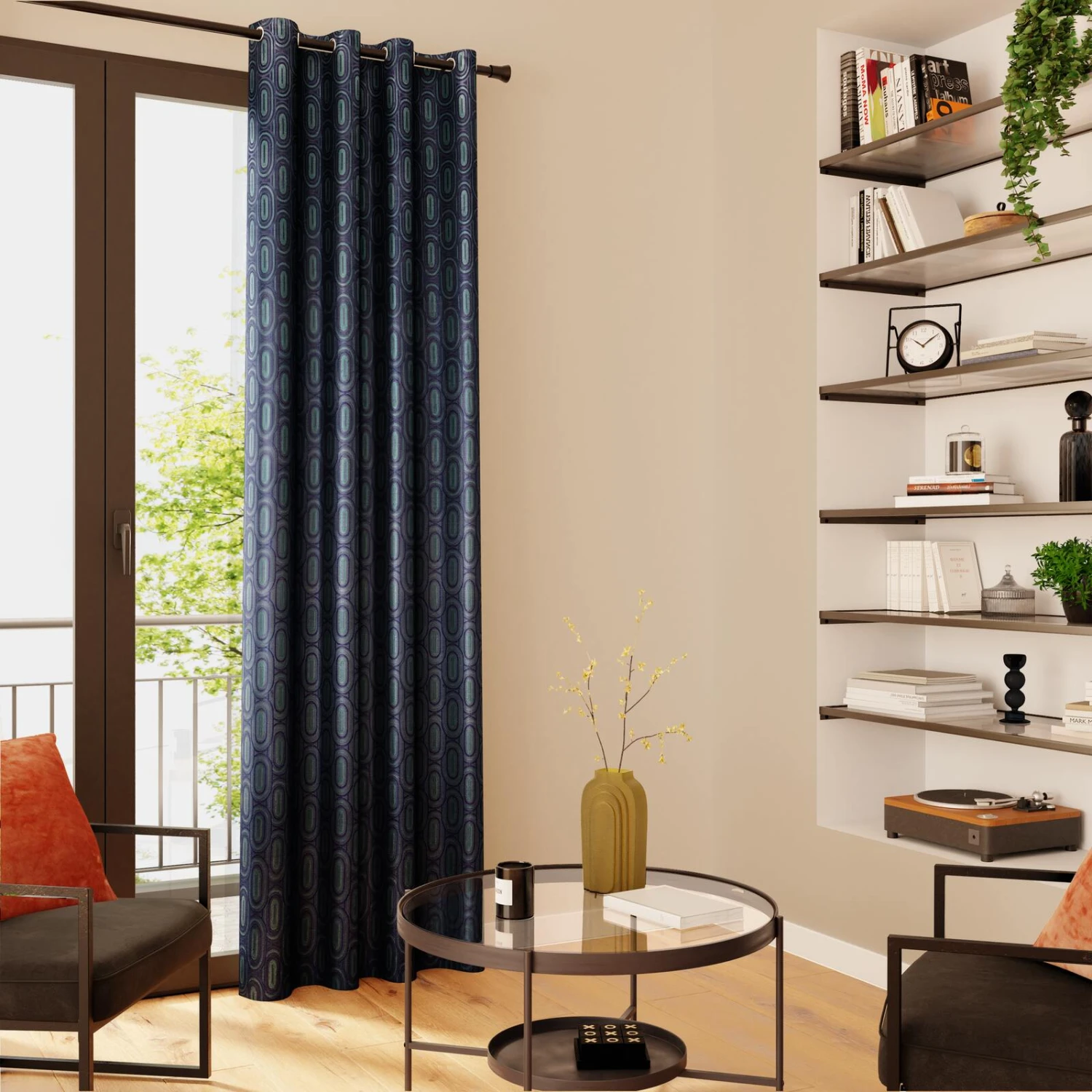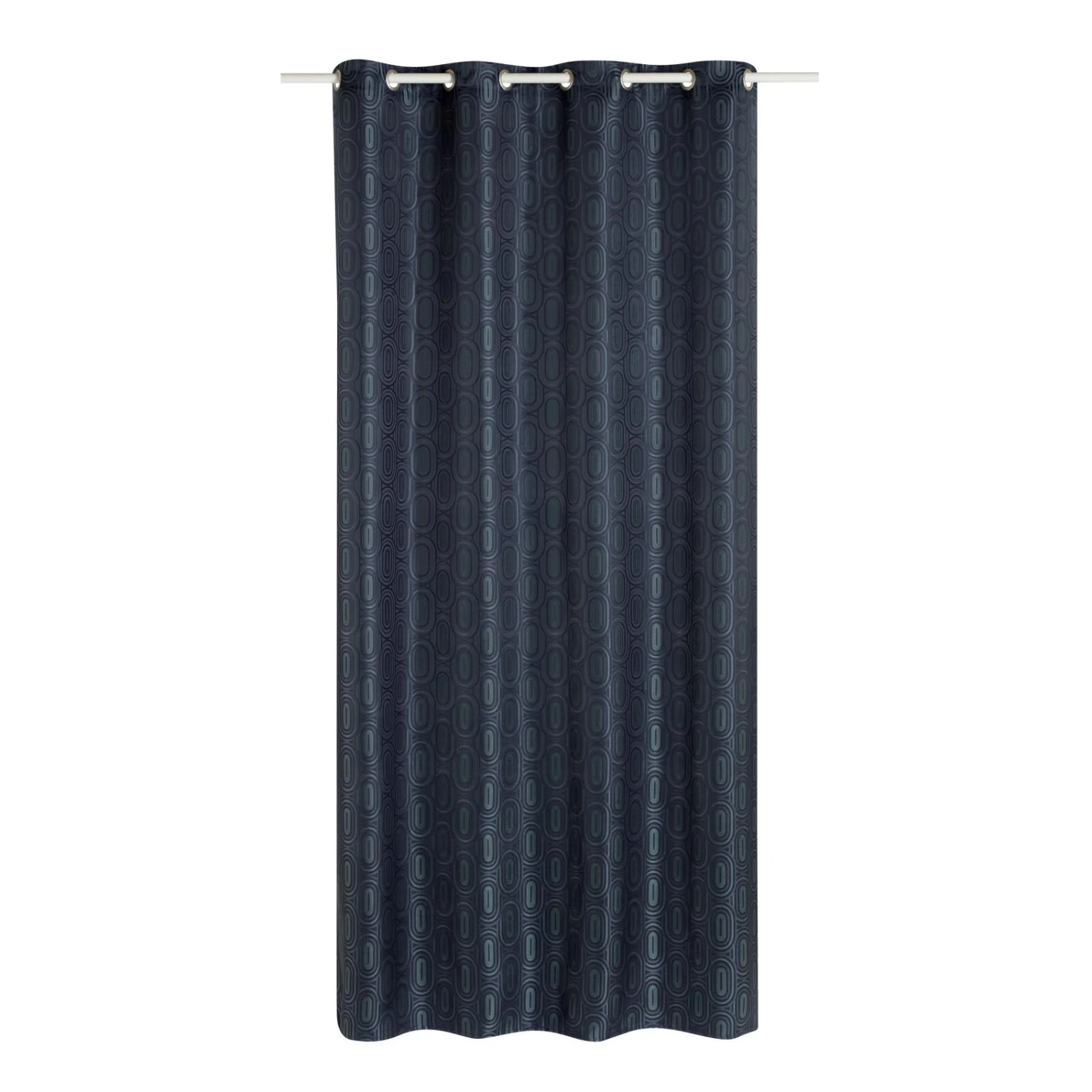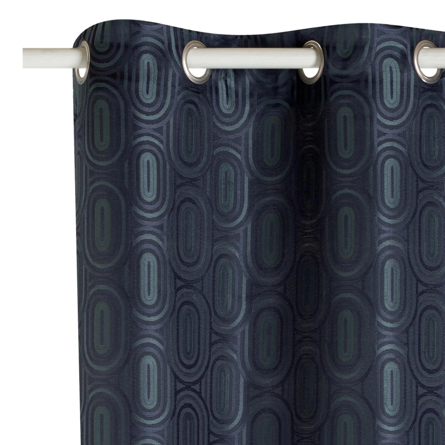 Le motif géométrique est simple et pourtant, l’effet est saisissant, presque hypnotique. Des ovales imbriqués les uns dans les autres s’alignent en quinconce et créent un ensemble élégant, chic et intemporel. La couleur bleu nuit du rideau opaque et les légères nuances de vert de gris contribuent à faire de NADJA une pièce déco raffinée. Le pouvoir décoratif du tissu jacquard n’est plus à prouver.