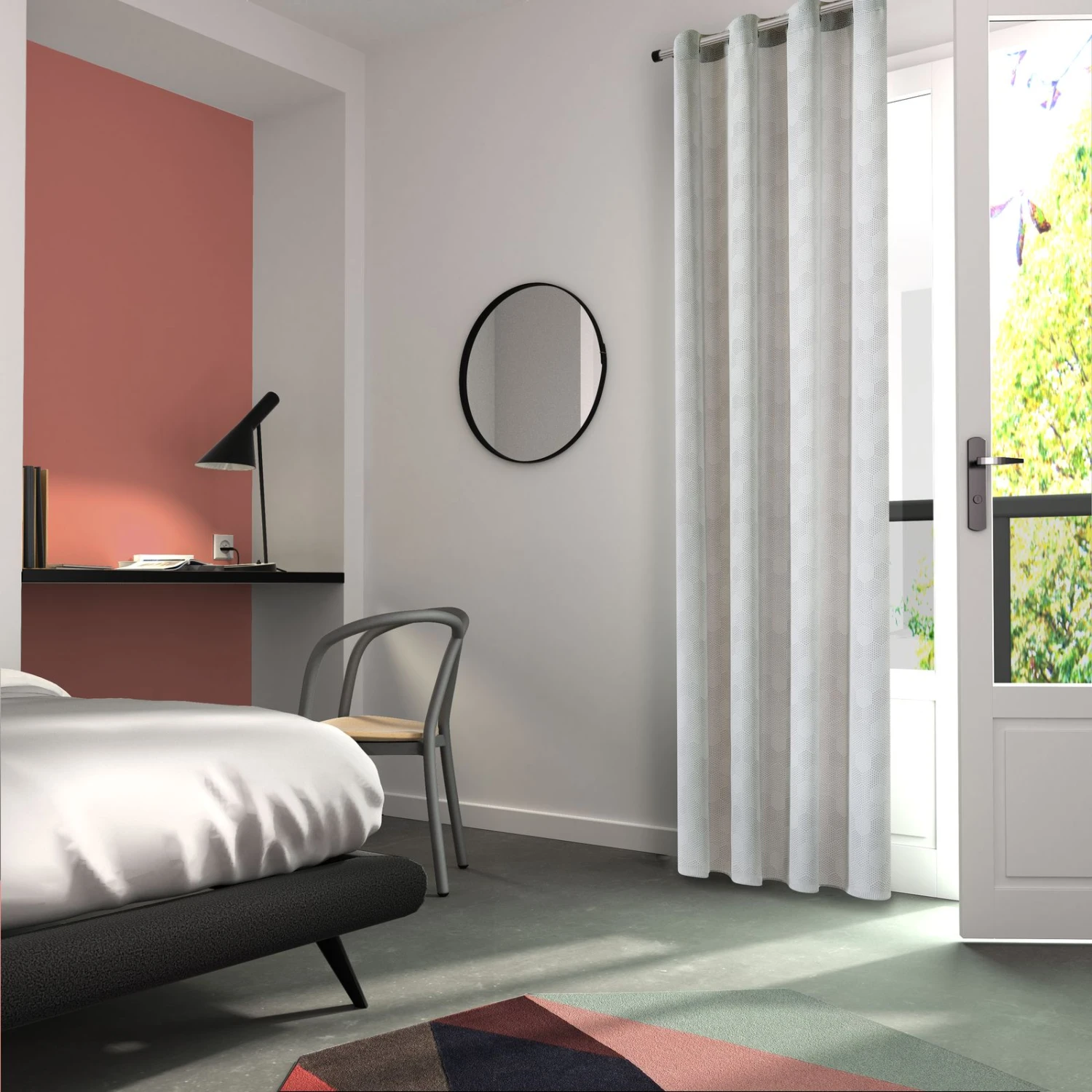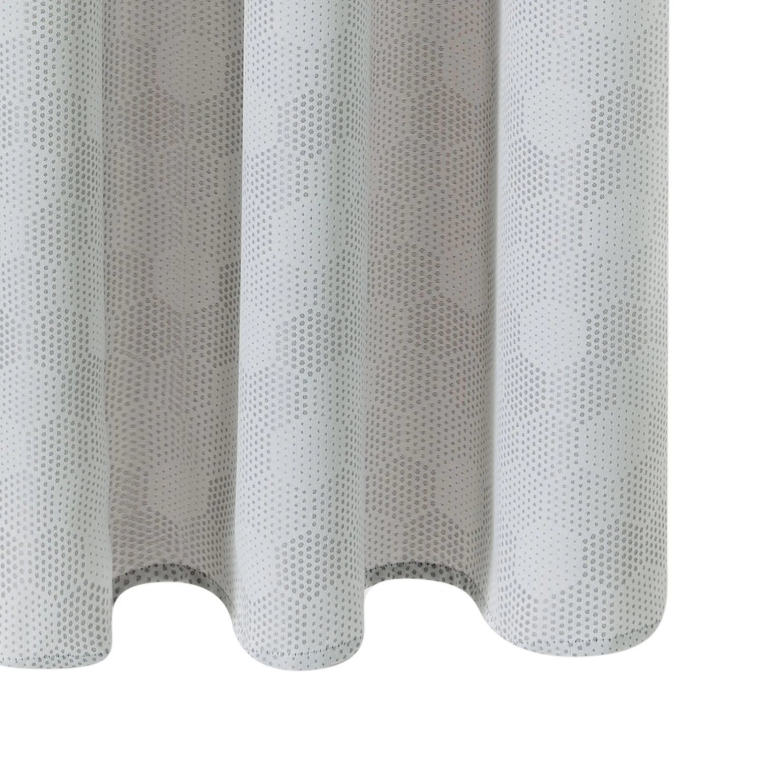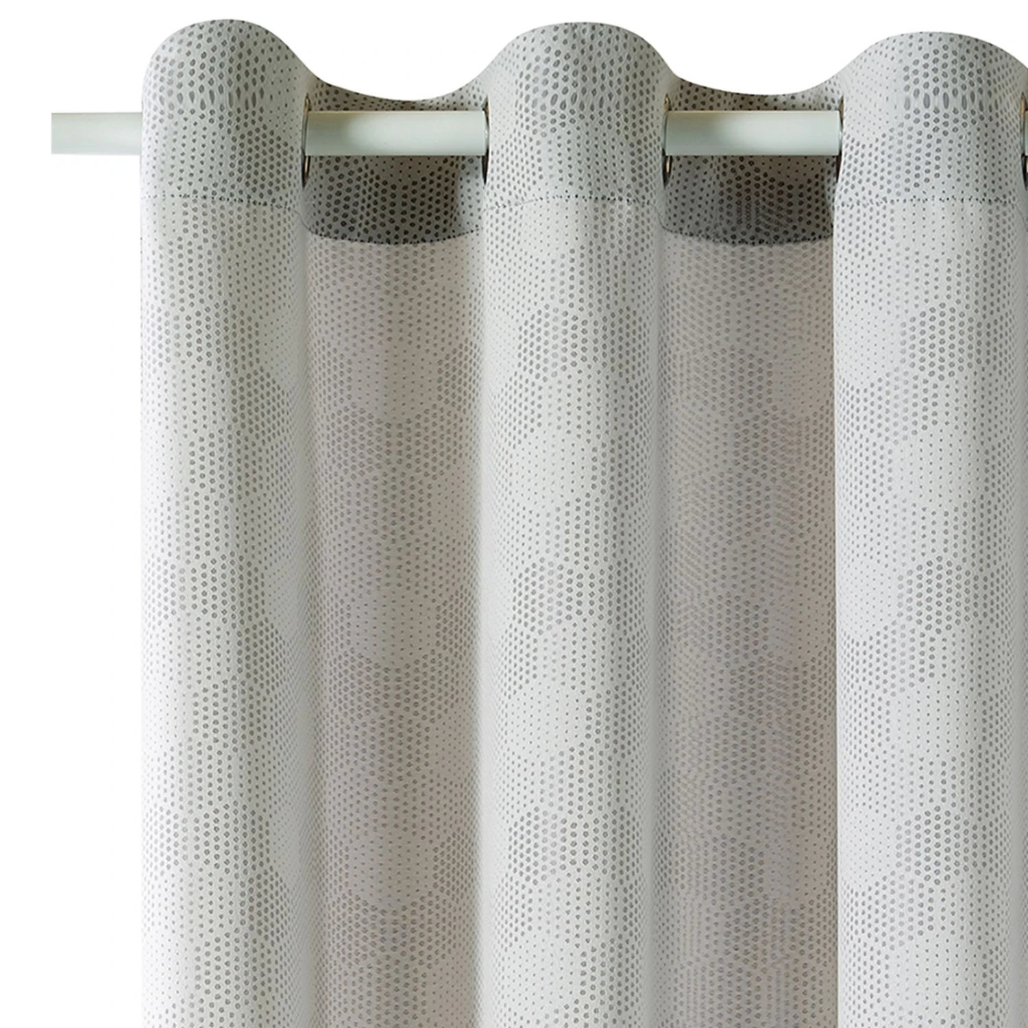 Le tissu jacquard offre un tombé lourd qui met en valeur vos fenêtres. La couleur gris perle à la fois claire et tendance, est soulignée par de petits motifs hexagonaux formés par des points afin de créer une ambiance intime et enveloppante qui s’accordera à une décoration scandinave.