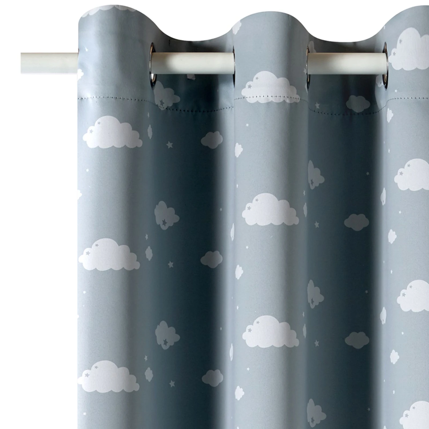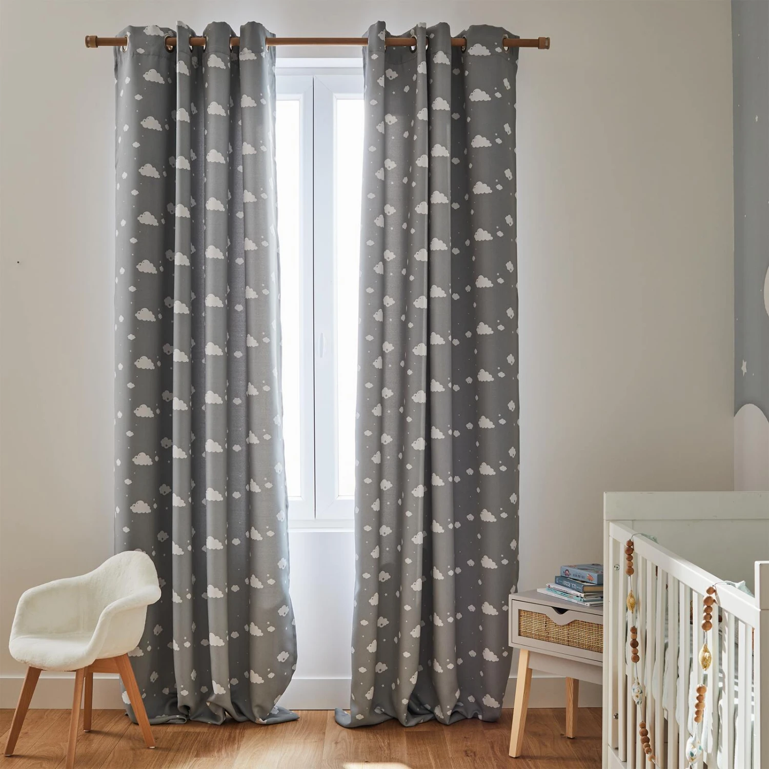 Craquez pour ce rideau au coloris gris perle qui est orné de nuages et d’étoiles de différentes tailles. Son graphisme apportera un effet décoratif très original et très apaisant dans la chambre de votre bébé.