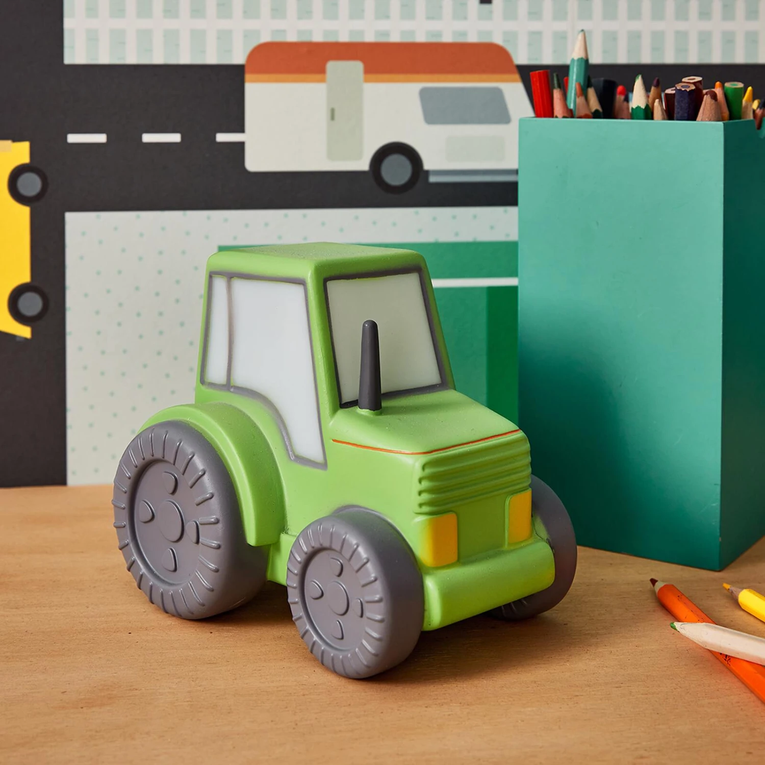 Cette joyeuse veilleuse PEDRO à la forme d’un magnifique tracteur, est coloré dans un vert herbe pour une décoration de chambre fun et vitaminée !