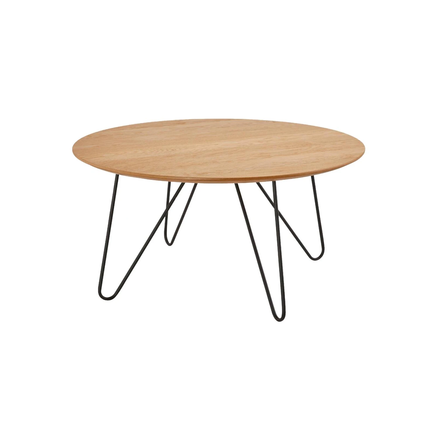 Le plateau de cette table basse à monter soi-même est composé de MDF plaqué chêne, et son piétement est réalisé en fer noir thermolaqué.