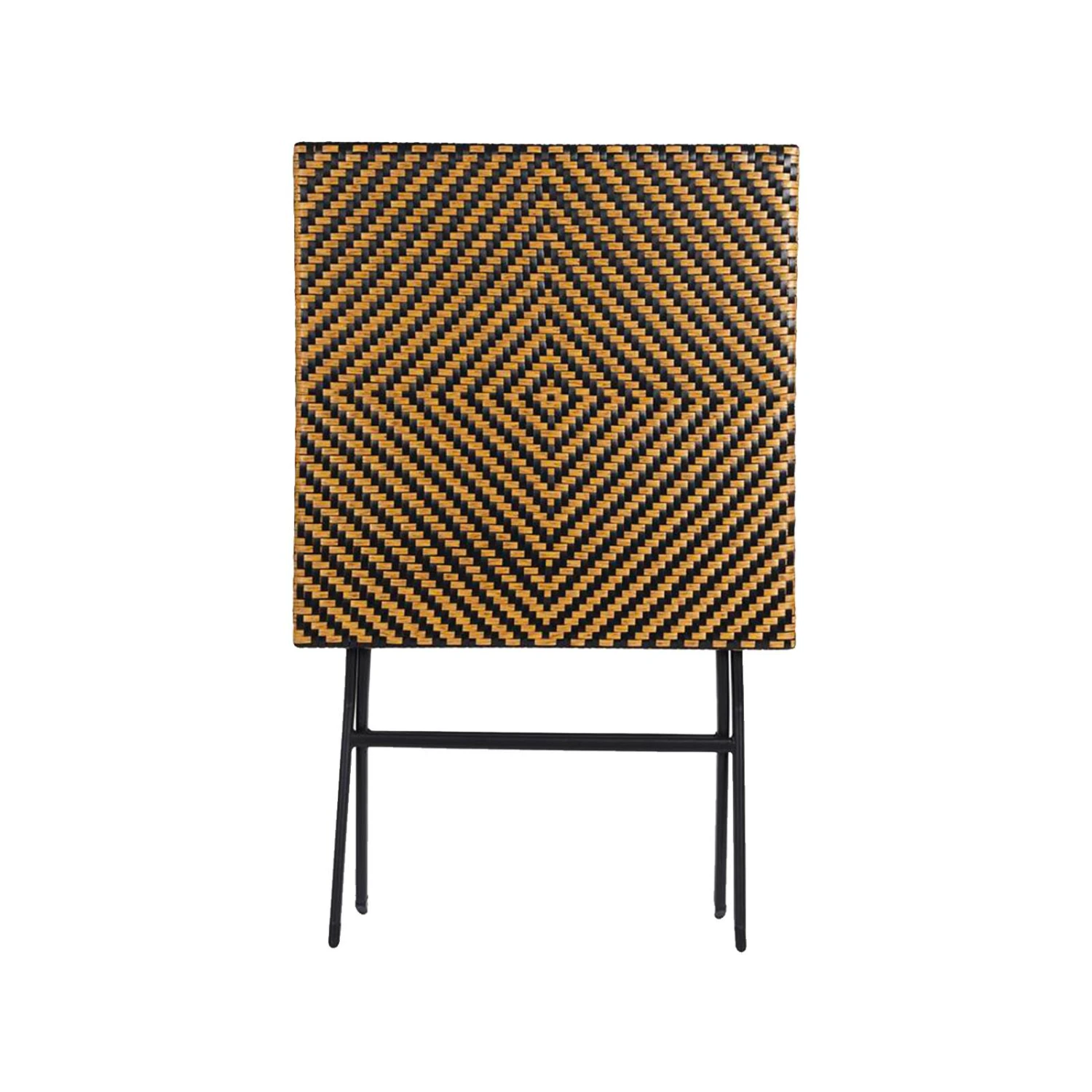 Enfin, la touche finale (et non des moindres) de la table UROA, garantie 2 ans, c’est son plateau. Celui-ci arbore des motifs géométriques tissés très originaux pour ce type de mobilier. De plus, ses teintes noires et brun clair lui donnent une dimension naturelle rappelant la décoration nomade ou ethnique. Elle se fondra alors à merveille dans votre extérieur !