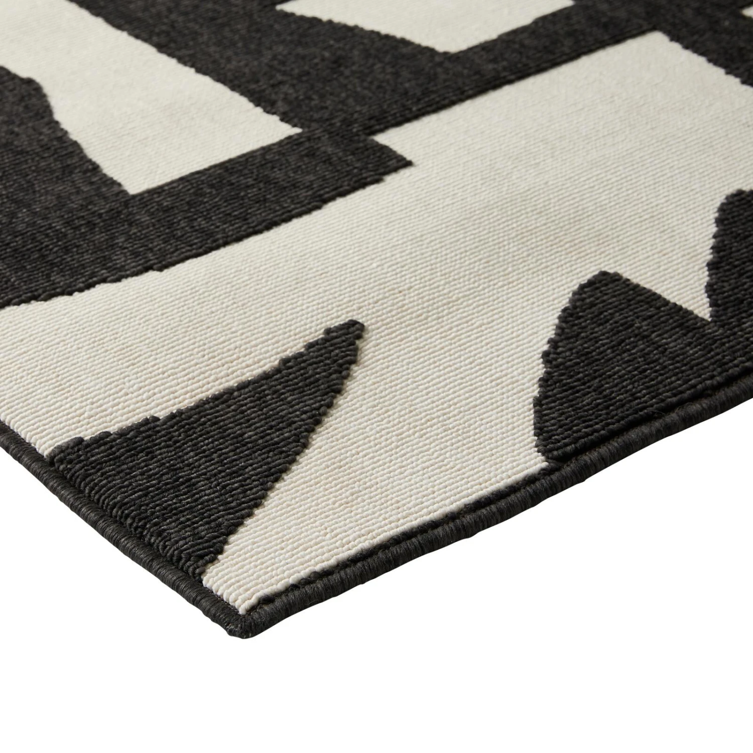 Vous accédez à la terrasse depuis la baie vitrée du salon ? Créez une décoration d’extérieur comme une véritable extension de votre pièce de vie en installant le même tapis ATO. Avec ses formes géométriques noires et beiges, il instaure une ambiance nomade qui se prête aussi bien à la déco d’une pièce de vie qu’à celle d’un jardin.
