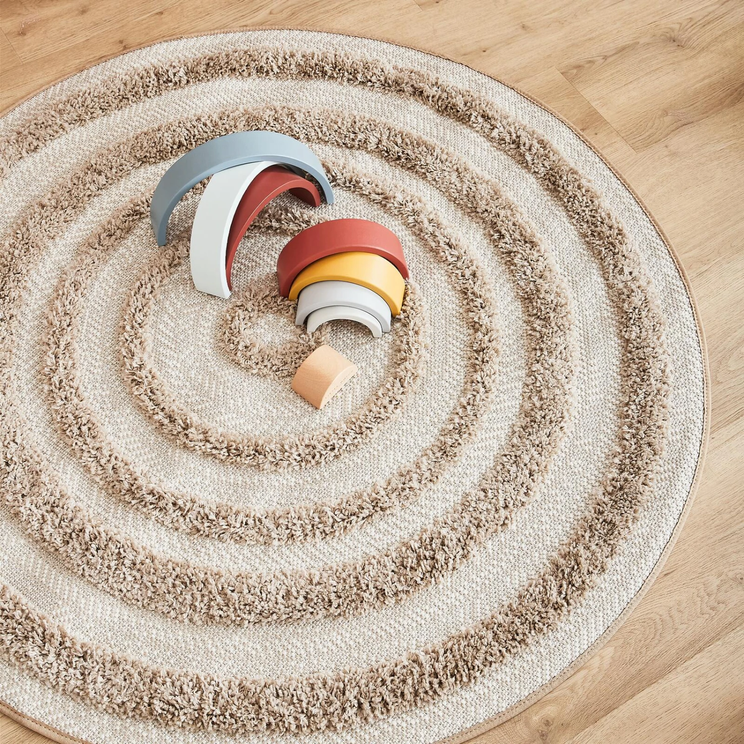 Ce tapis rond JONAS aux différentes teintes de beiges apportera une touche chaleureuse et réconfortante dans votre intérieur ! Il sera parfait dans une entrée ou au pied d’un lit.