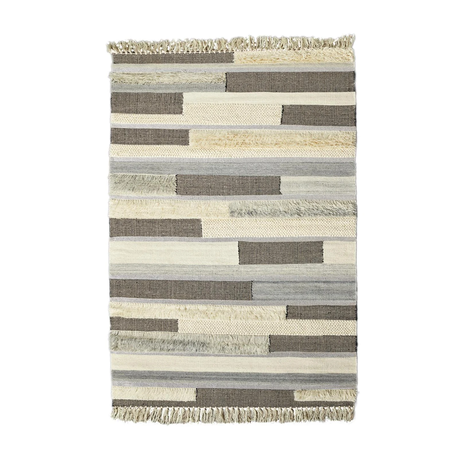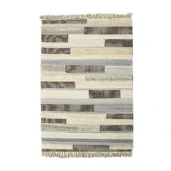 La richesse et variation des motifs et des textures crée un mélange tout à fait réussi, pour un tapis doux et agréable. Il est également muni de franges sur le pourtour, ce qui lui confère un look bohème et naturel, qui conviendra à un grand nombre d’ambiances déco.