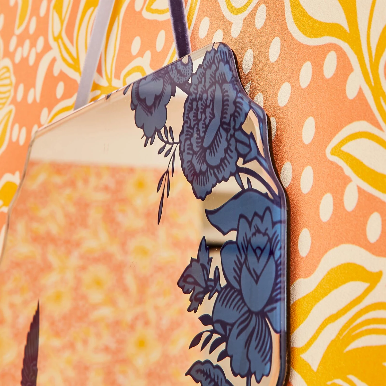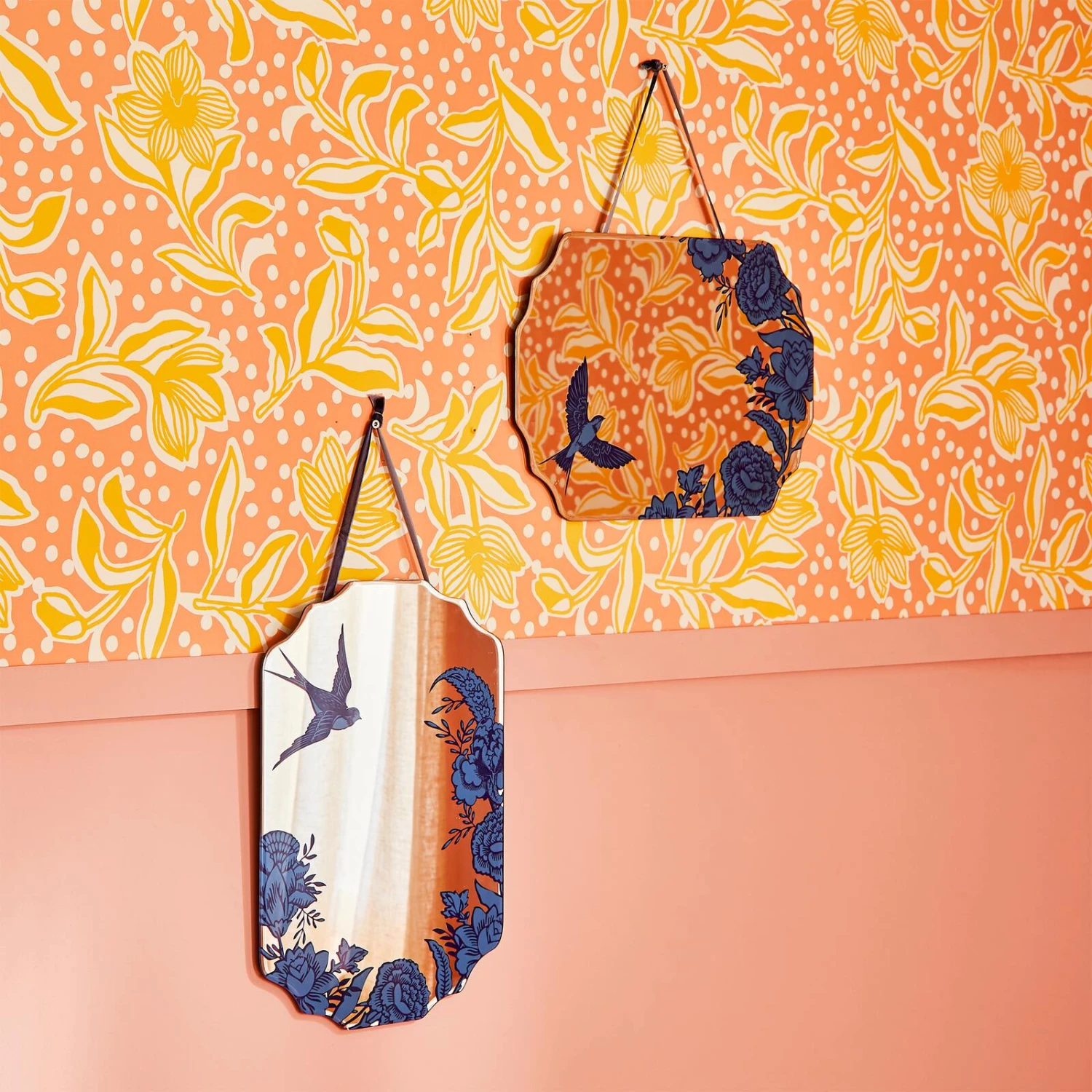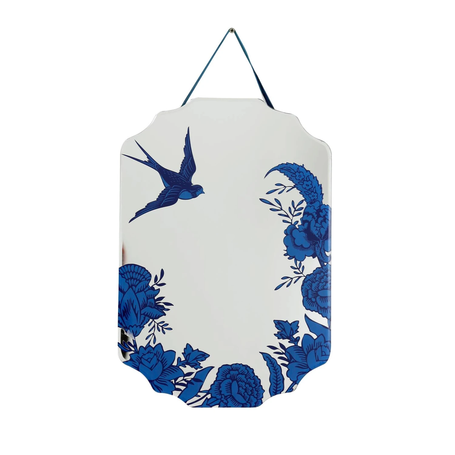 Il existe deux modèles de ce charmant miroir WILLOW de Temerity Jones. Le premier est dirigé de manière verticale : l’hirondelle vole depuis la partie haute et gauche du miroir. Sur le second modèle, disposé à l’horizontale, l’oiseau vole depuis la partie inférieure gauche du miroir pour se diriger vers les jolies fleurs bleues sur la droite.
