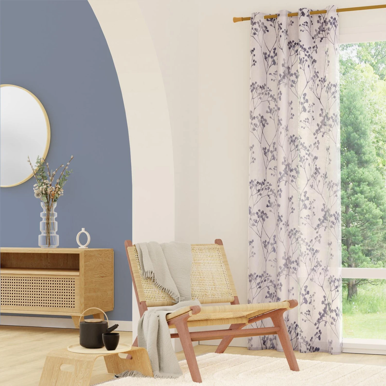 Découvrez le rideau prêt à poser HERBERIES aux imprimés feuillages de couleur amande.