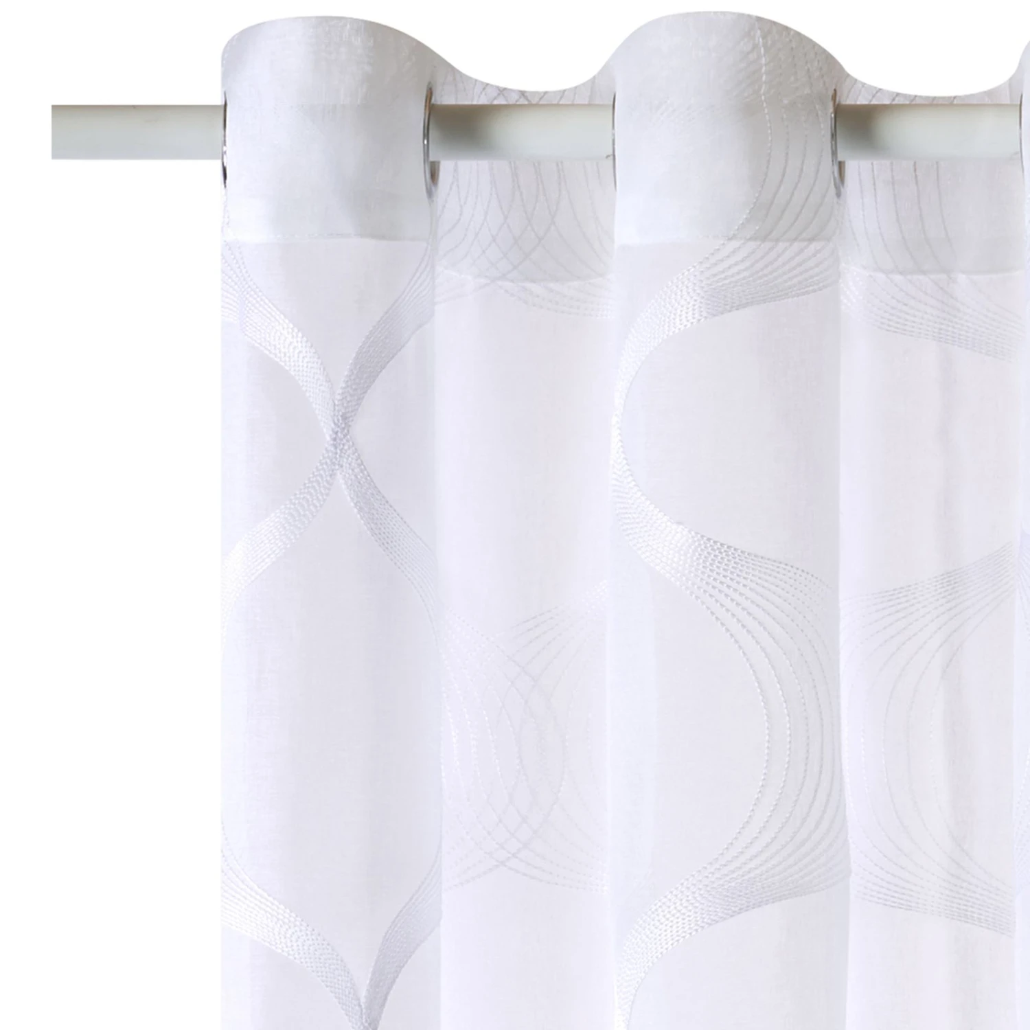 Fondez pour le voilage SISMO ! Son voile blanc léger, au tombé fluide et vaporeux, crée une ambiance pleine de légèreté. Les ornements blancs ondulés apportent une touche de fantaisie, qui sera parfaite dans une décoration de style scandinave.