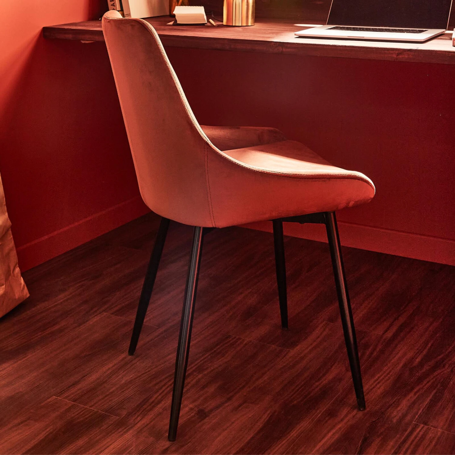 Les designers ont fait fort en mixant le côté chaleureux du velours à la délicatesse de belles formes arrondies. La chaise ZELIE arbore un subtil look baroque, art déco et vintage qui colle totalement aux ambiances rétro.