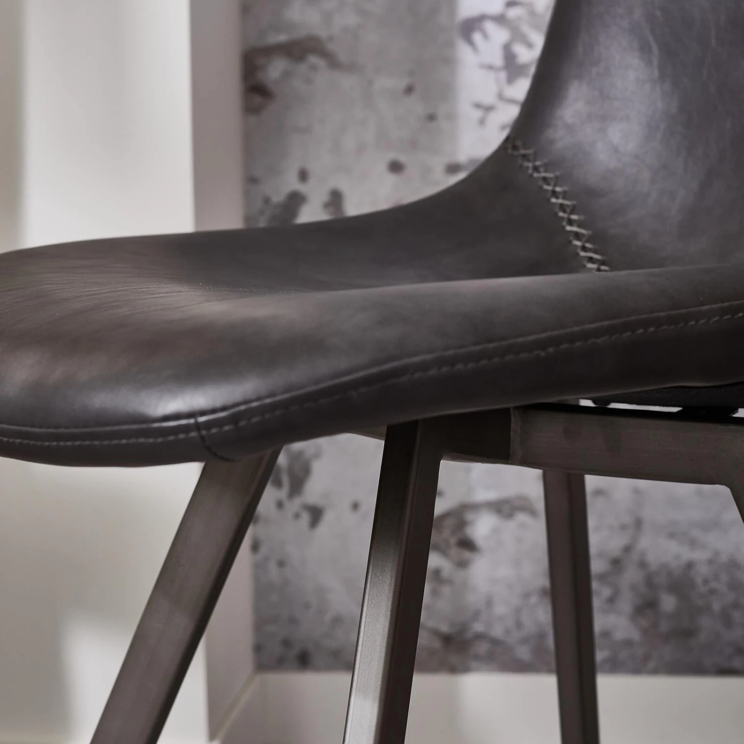 Fabriquée en polyuréthane pouvant être très élastique et résistant à l’usure, aux couleurs et à la chaleur, elle dispose d’un cadre en métal. Le dossier de la chaise présente des coutures en zigzag, ce qui crée un effet contemporain mais aussi très authentique dans votre pièce.